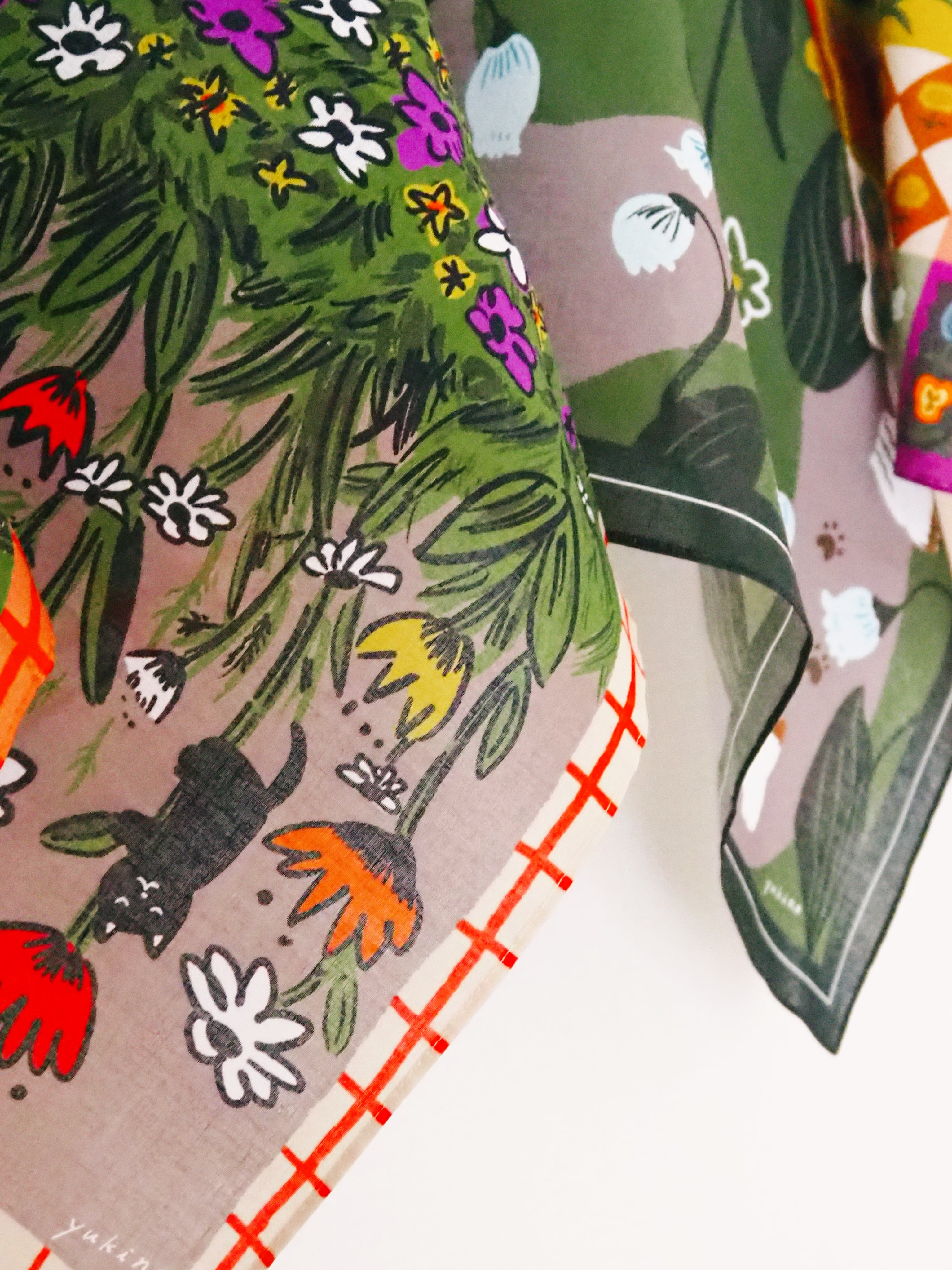 大判に作ったyukinoのハンカチは、手や汗を拭うハンカチとしての用途以外にも