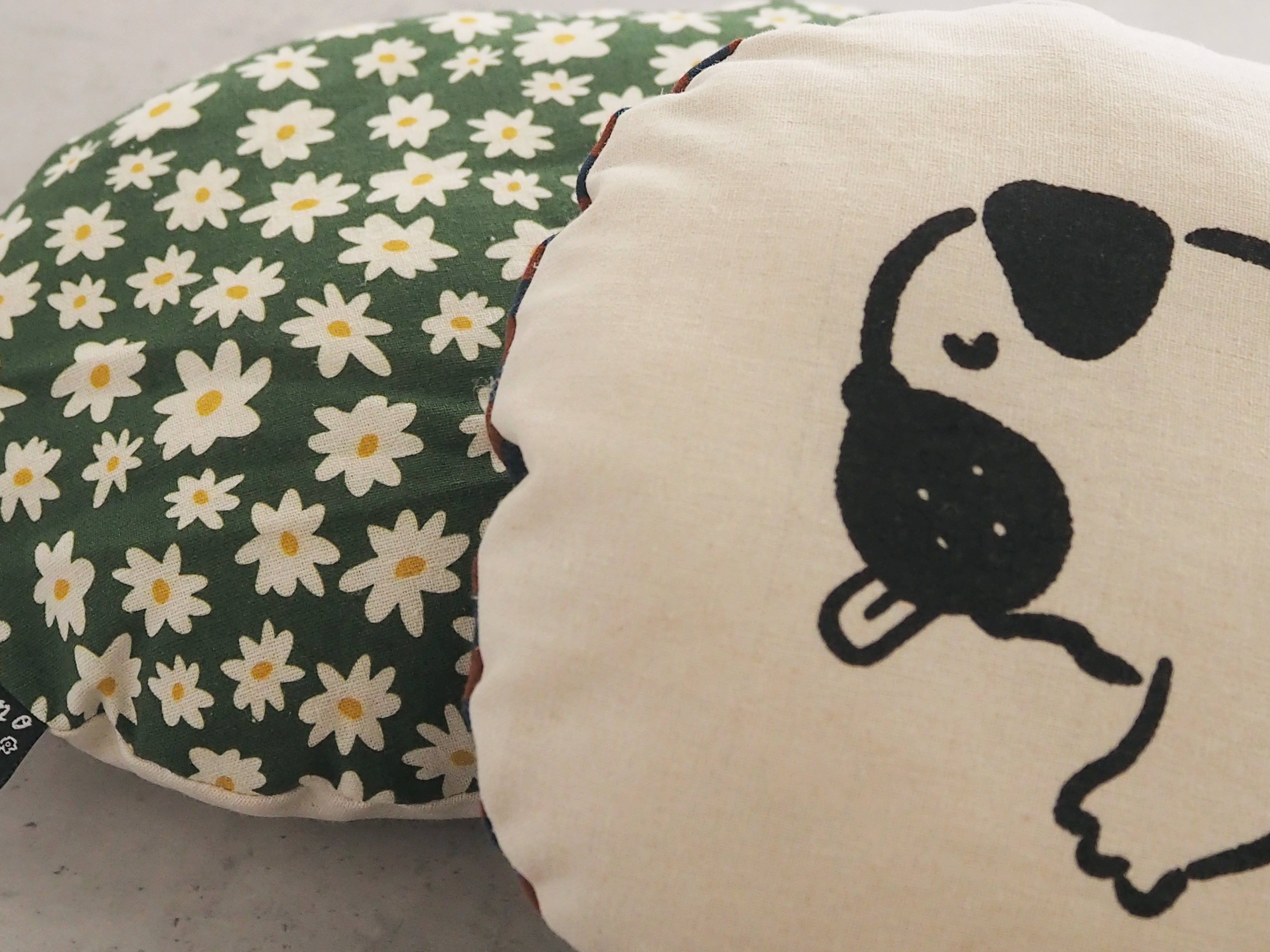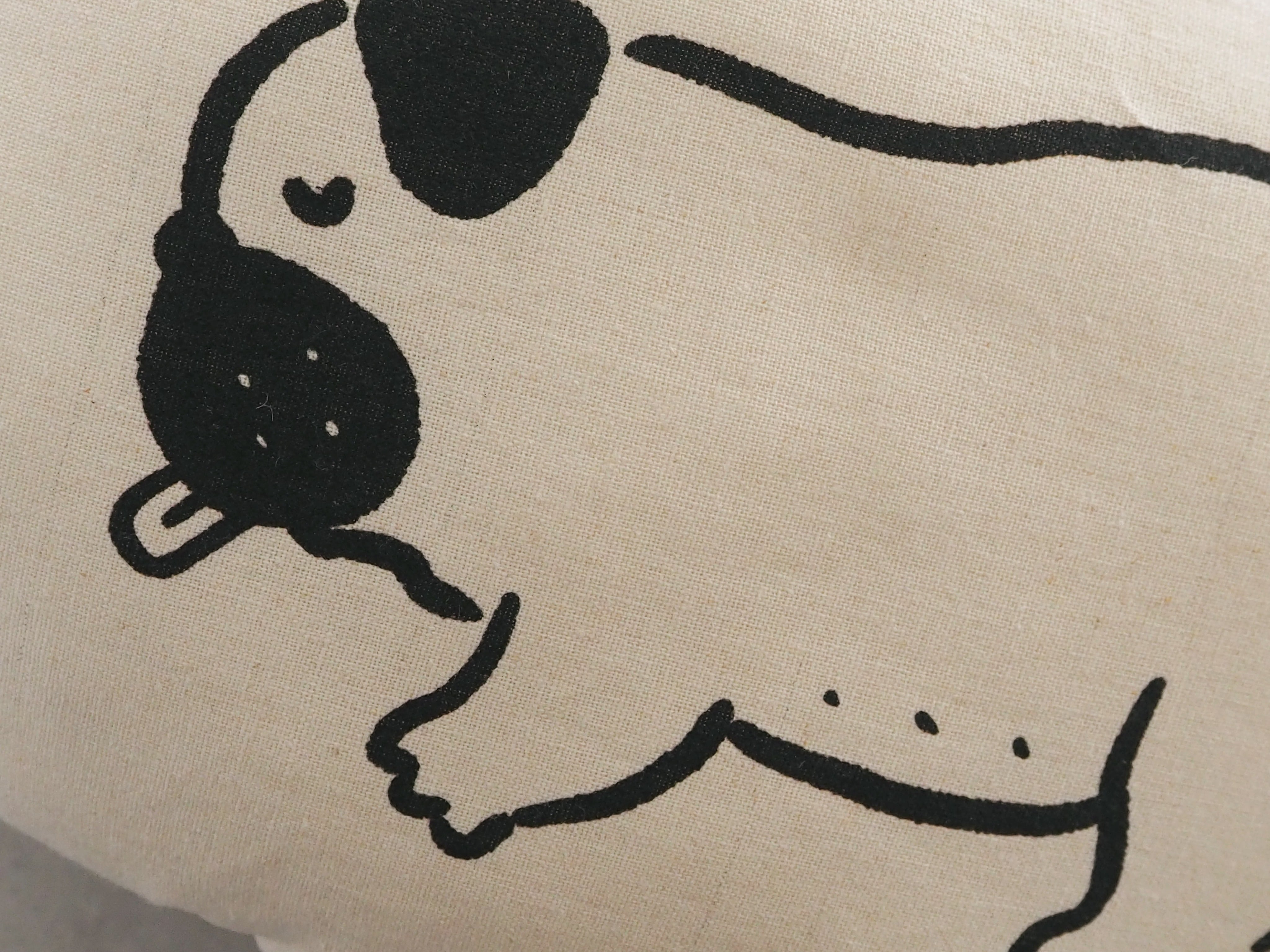 こちらの商品は、布地に直接プリントを施したクッションです。印刷の特性上、とくにベタ塗り面には以下の点が見られる場合がございます。