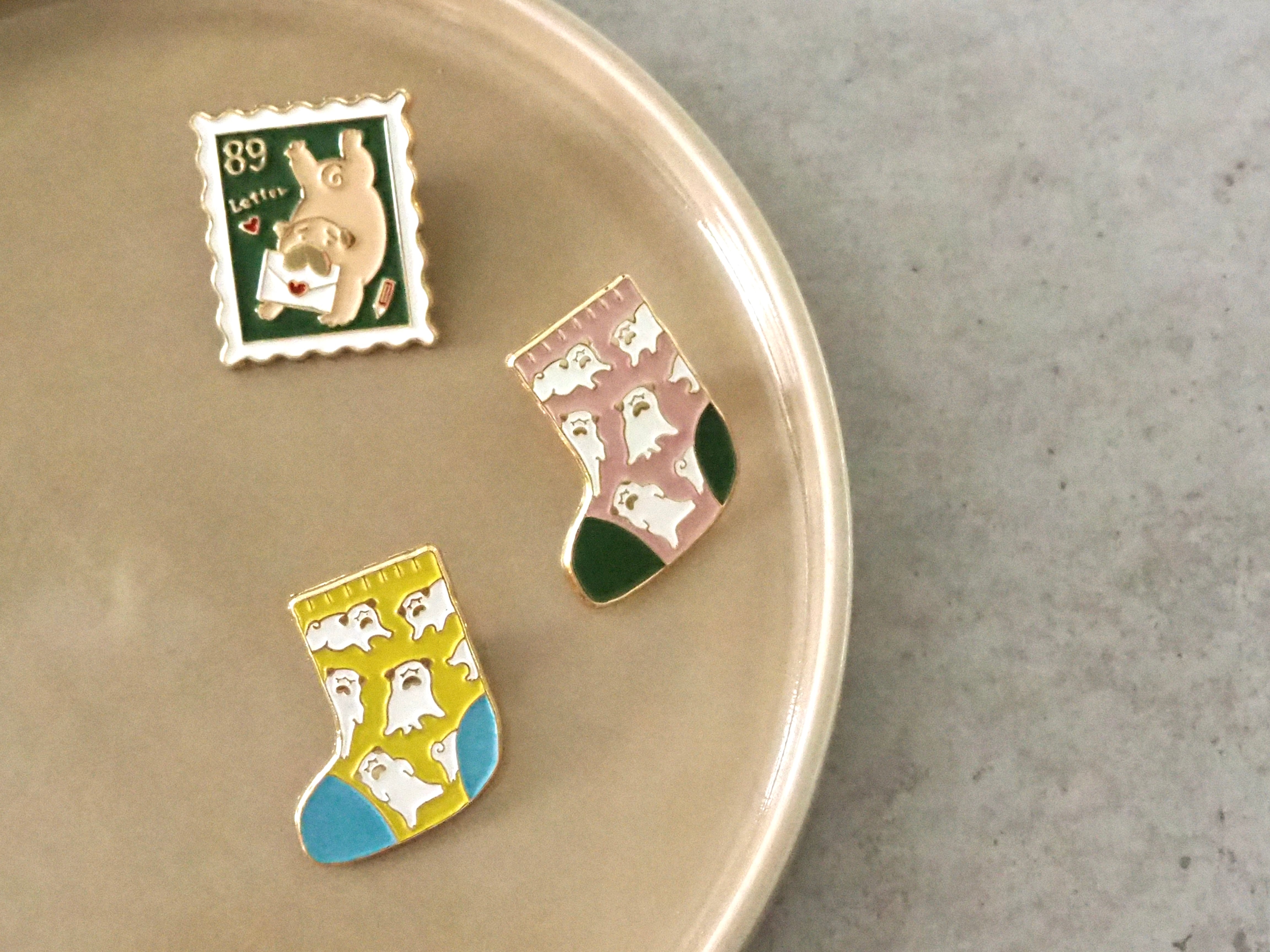 人気の靴下が小さくなってピンバッチになっちゃった!なミニ靴下デザインです。