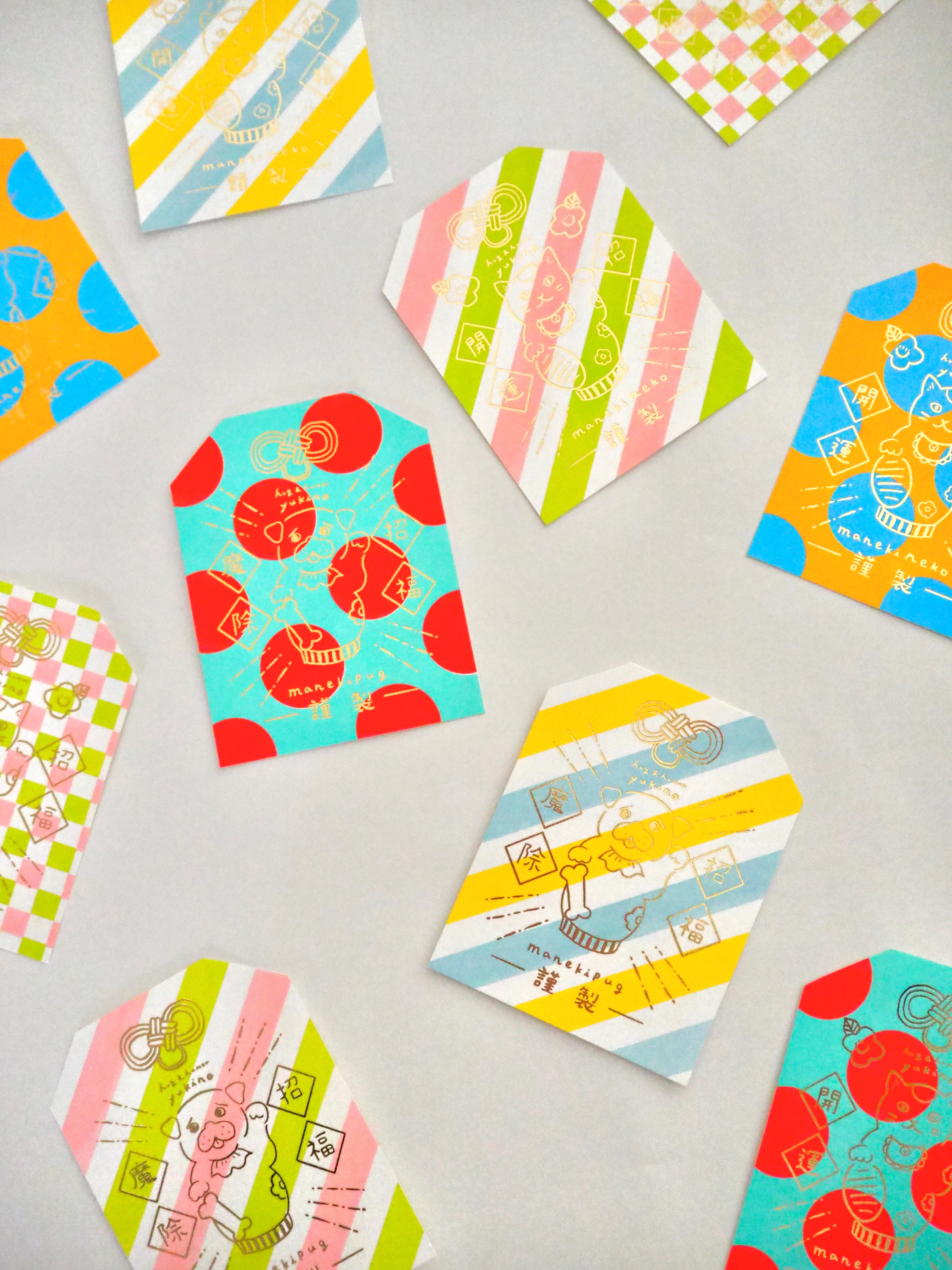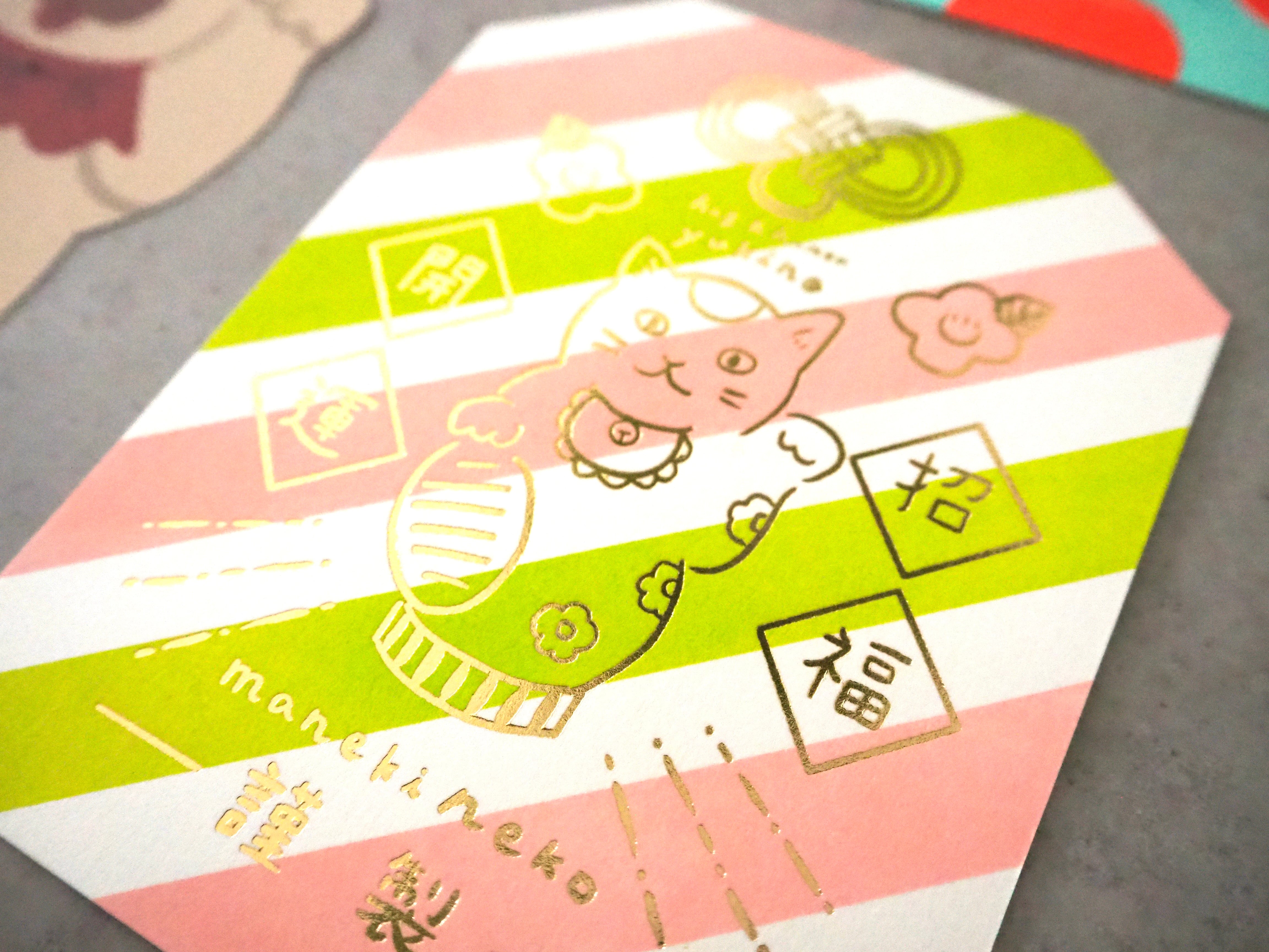 キラキラとした招き猫の箔押しが施されたこのカードは、特別なメッセージを添えるのにぴったり。