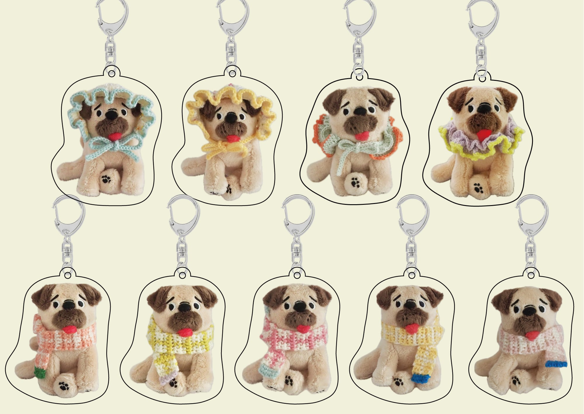 ぬいぐるみの可愛いデザインを印刷したアクリルキーホルダーです。
