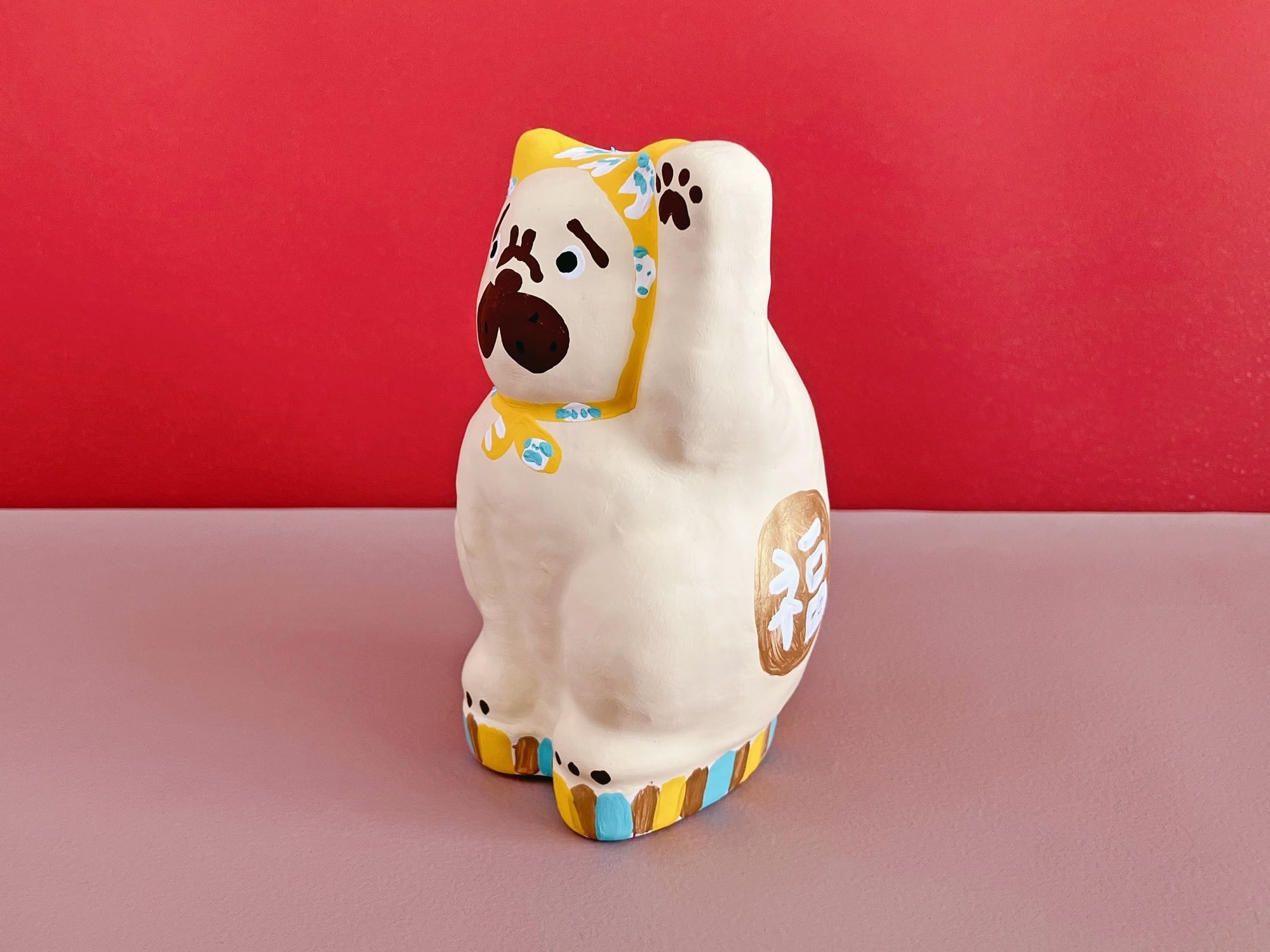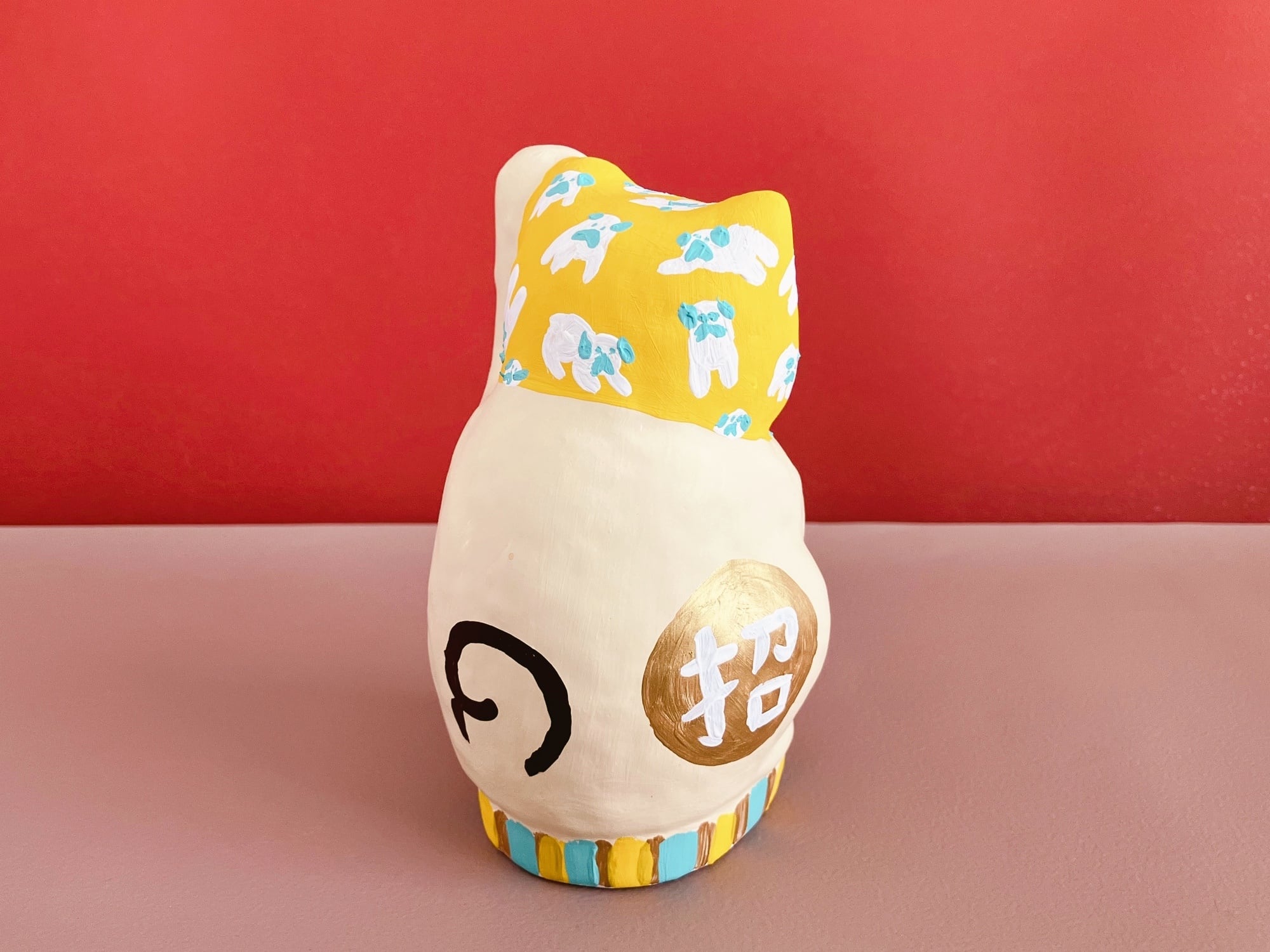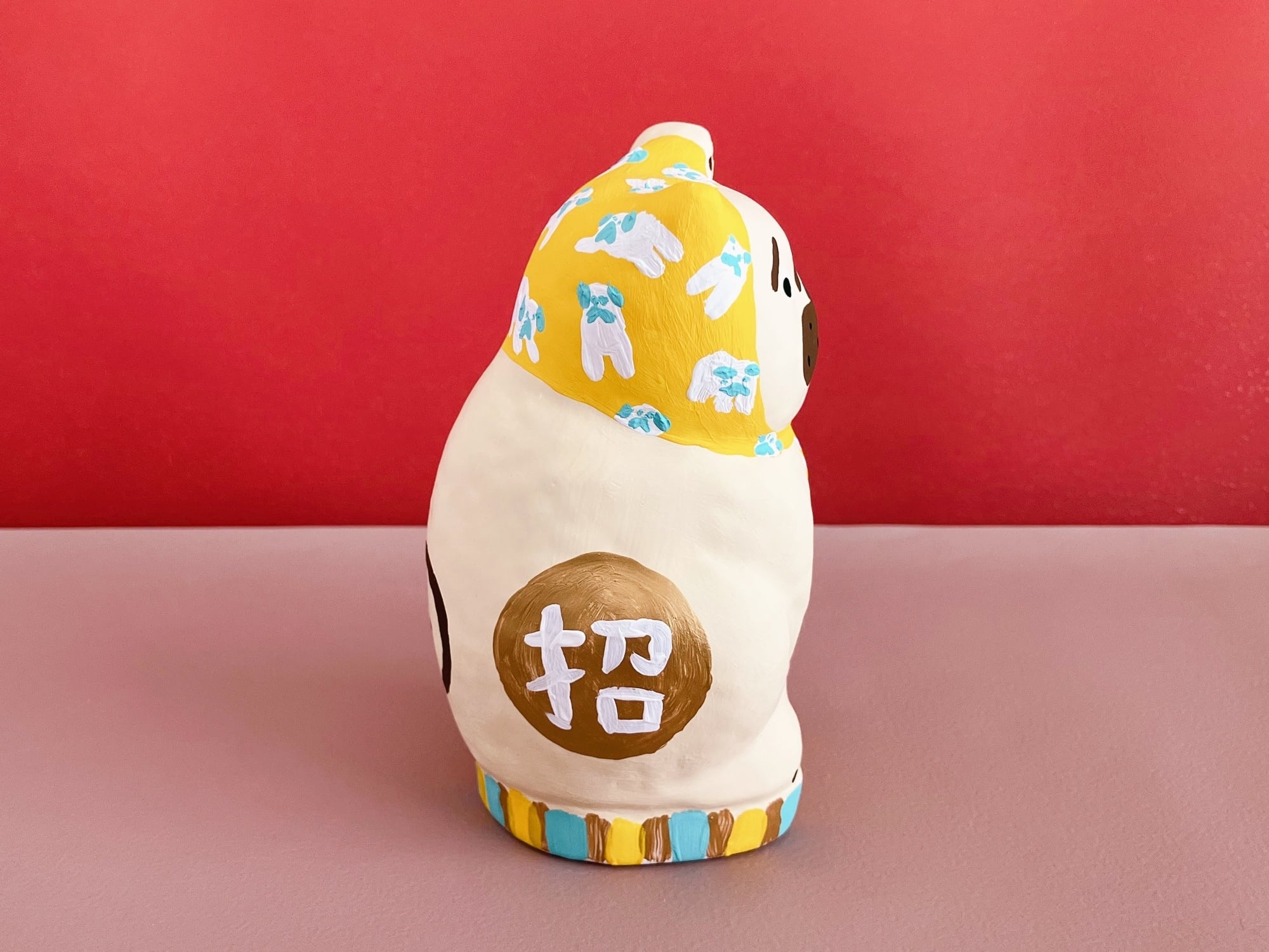 招きパグ「ほっかむり」イエロー【すぐ発送or予約生産】