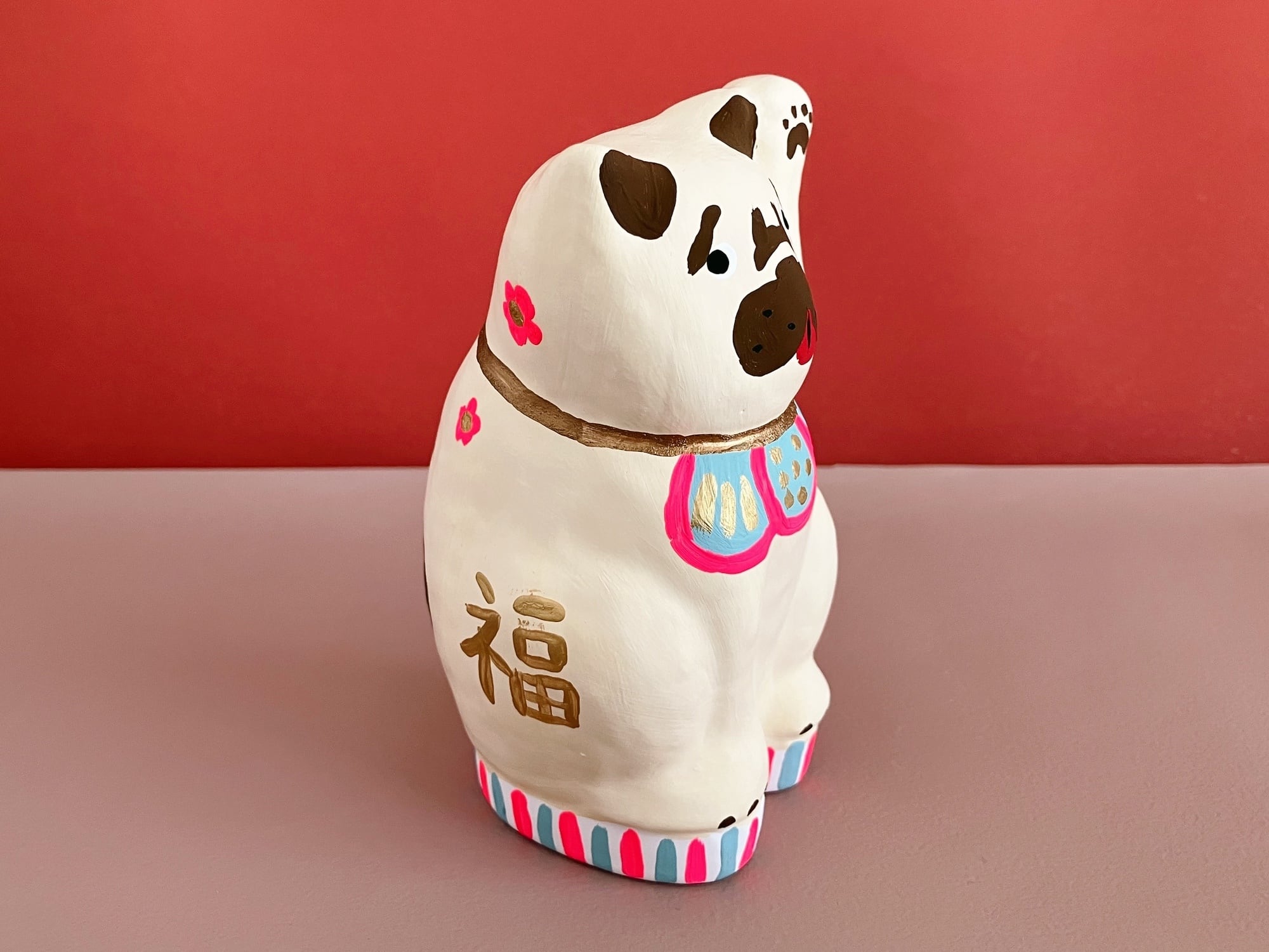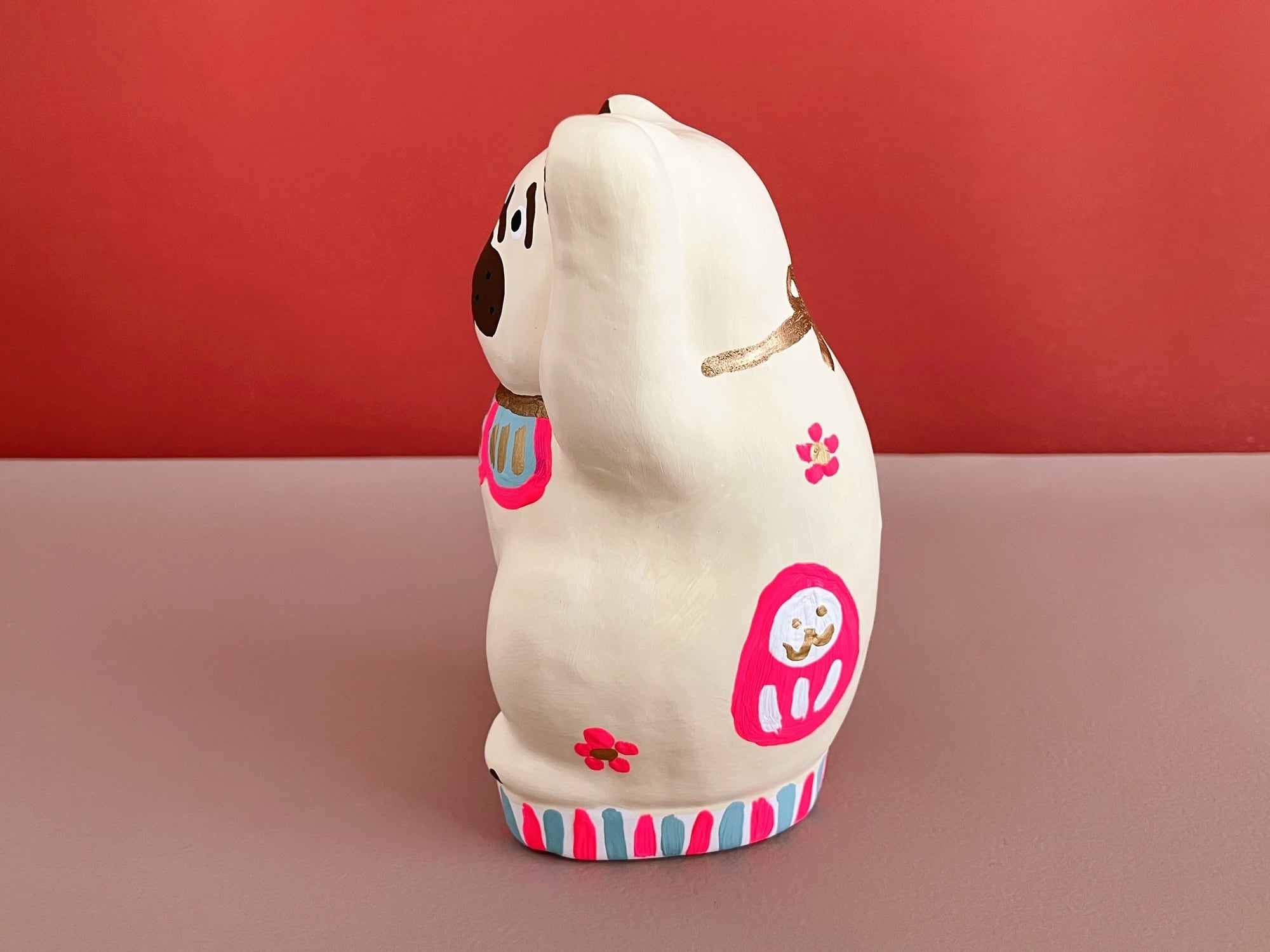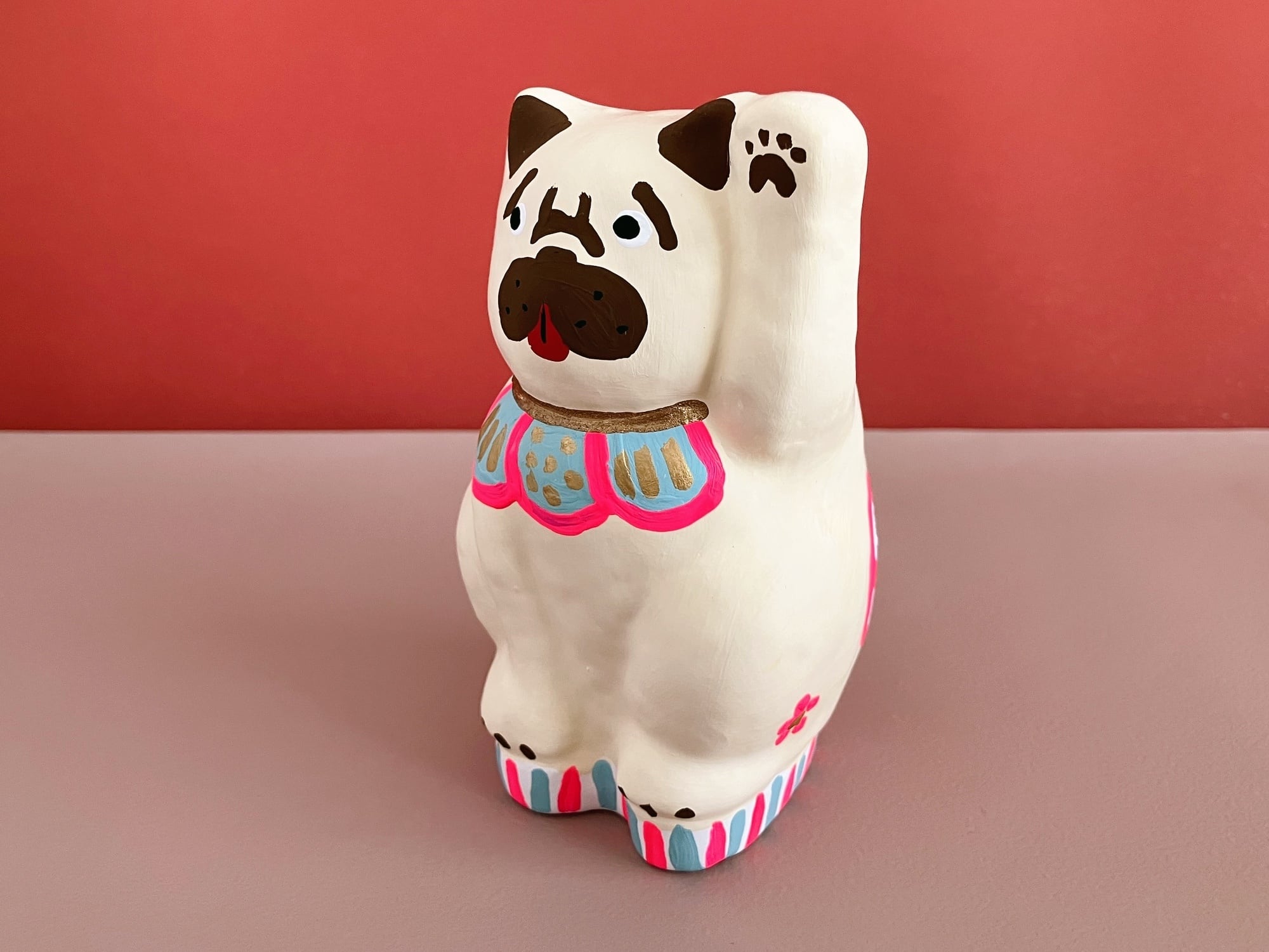 招きパグ「水色×ネオンピンク 福」【すぐ発送or予約生産】