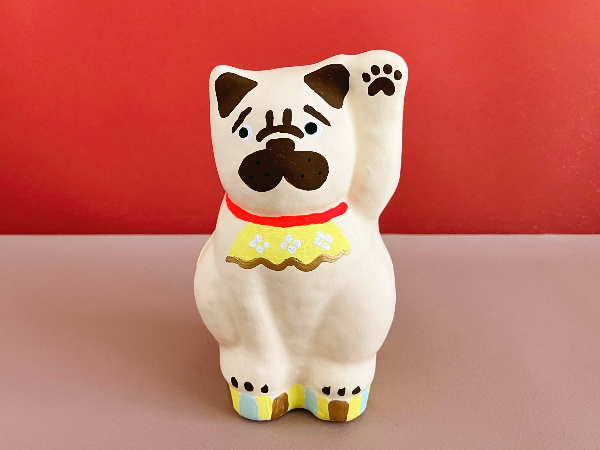 招きパグ「ネオンイエロー招福」【すぐ発送or予約生産】