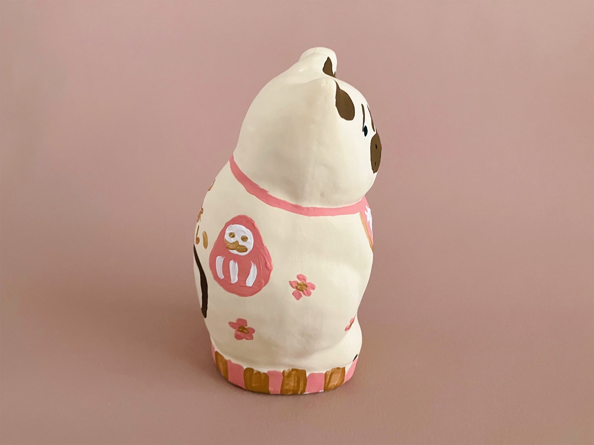 ・はりこの置物は紙製で軽い為土合部分を粘土で張り合わせているものがございます。土でできている為、割れやすくなっておりますので取り扱いに注意してください。