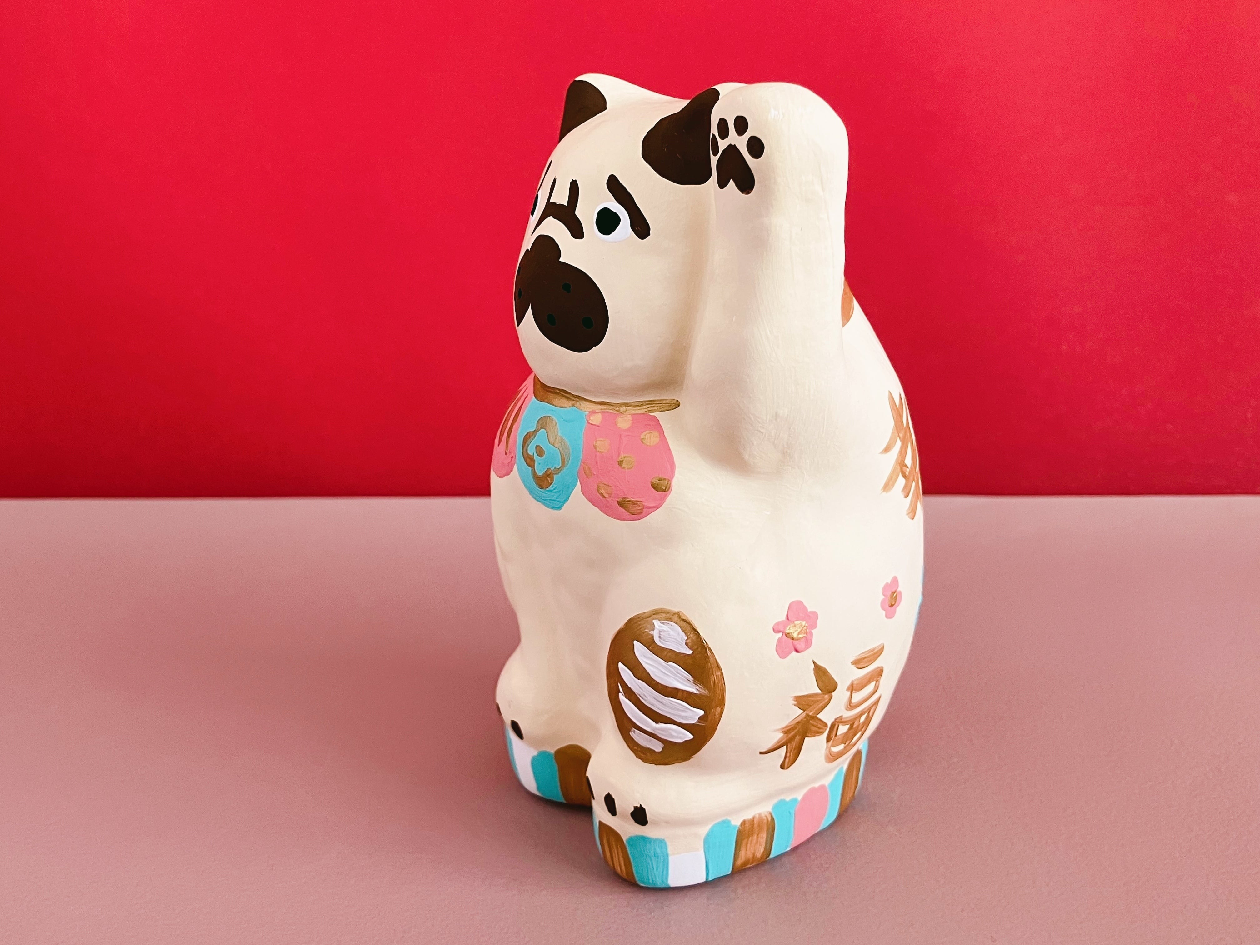 招きパグ「幸福 ピンク×エメラルド」【すぐ発送or予約生産】