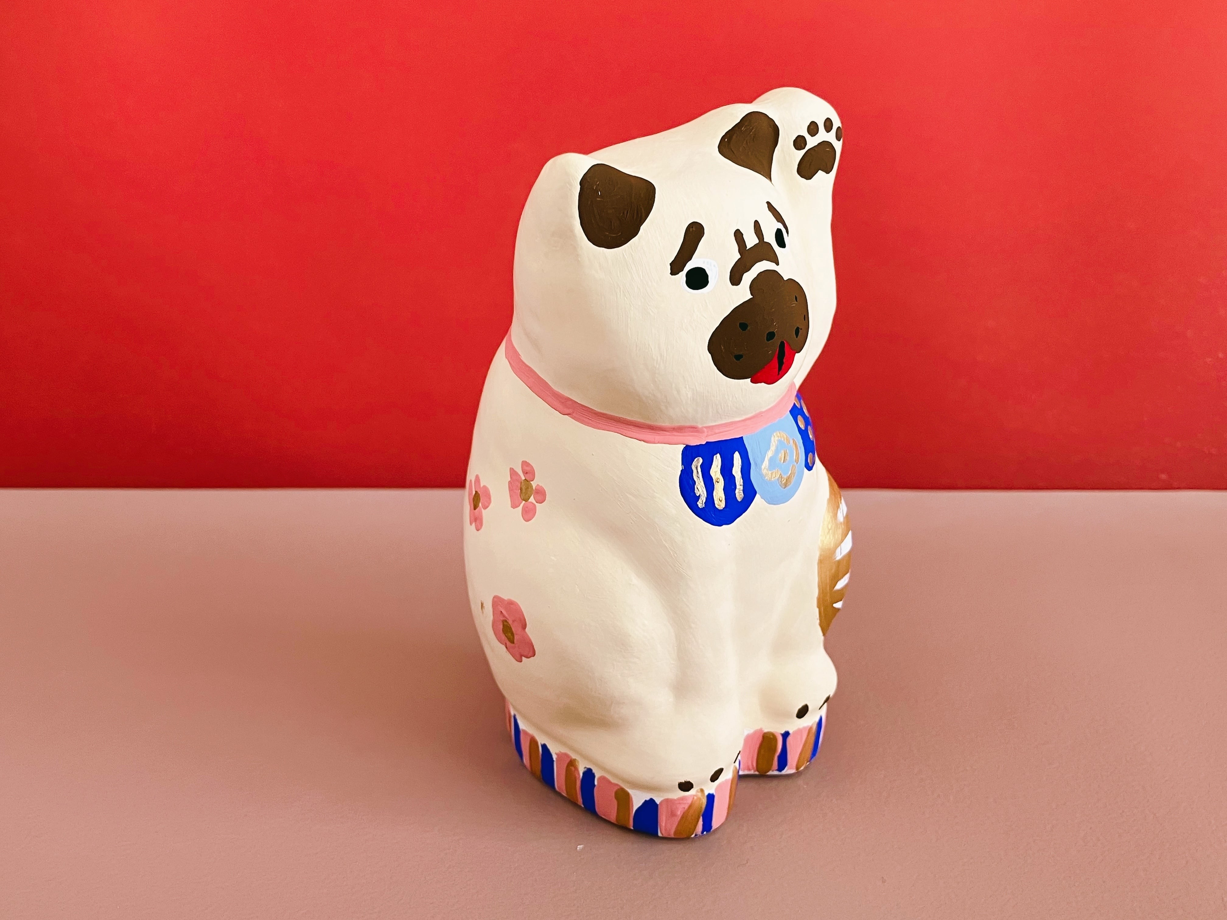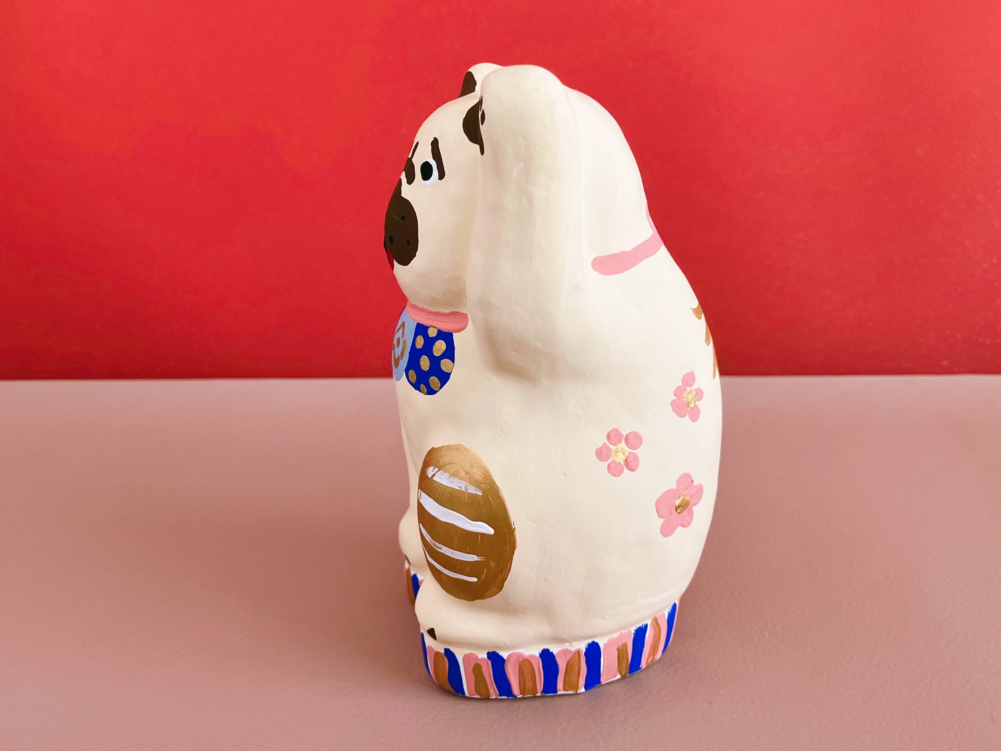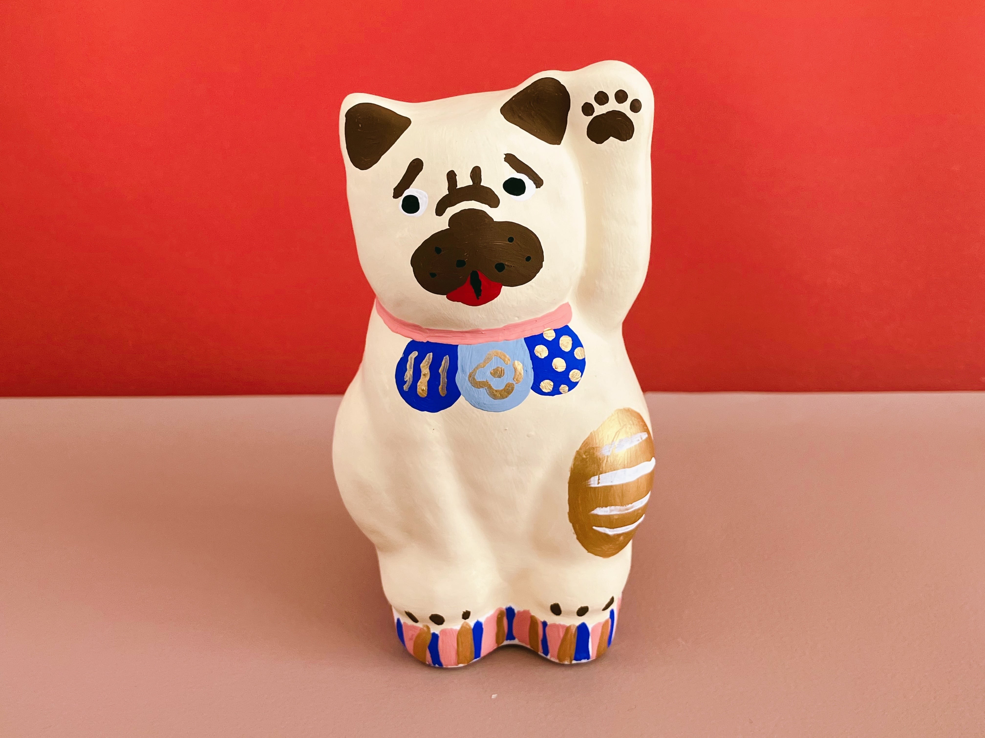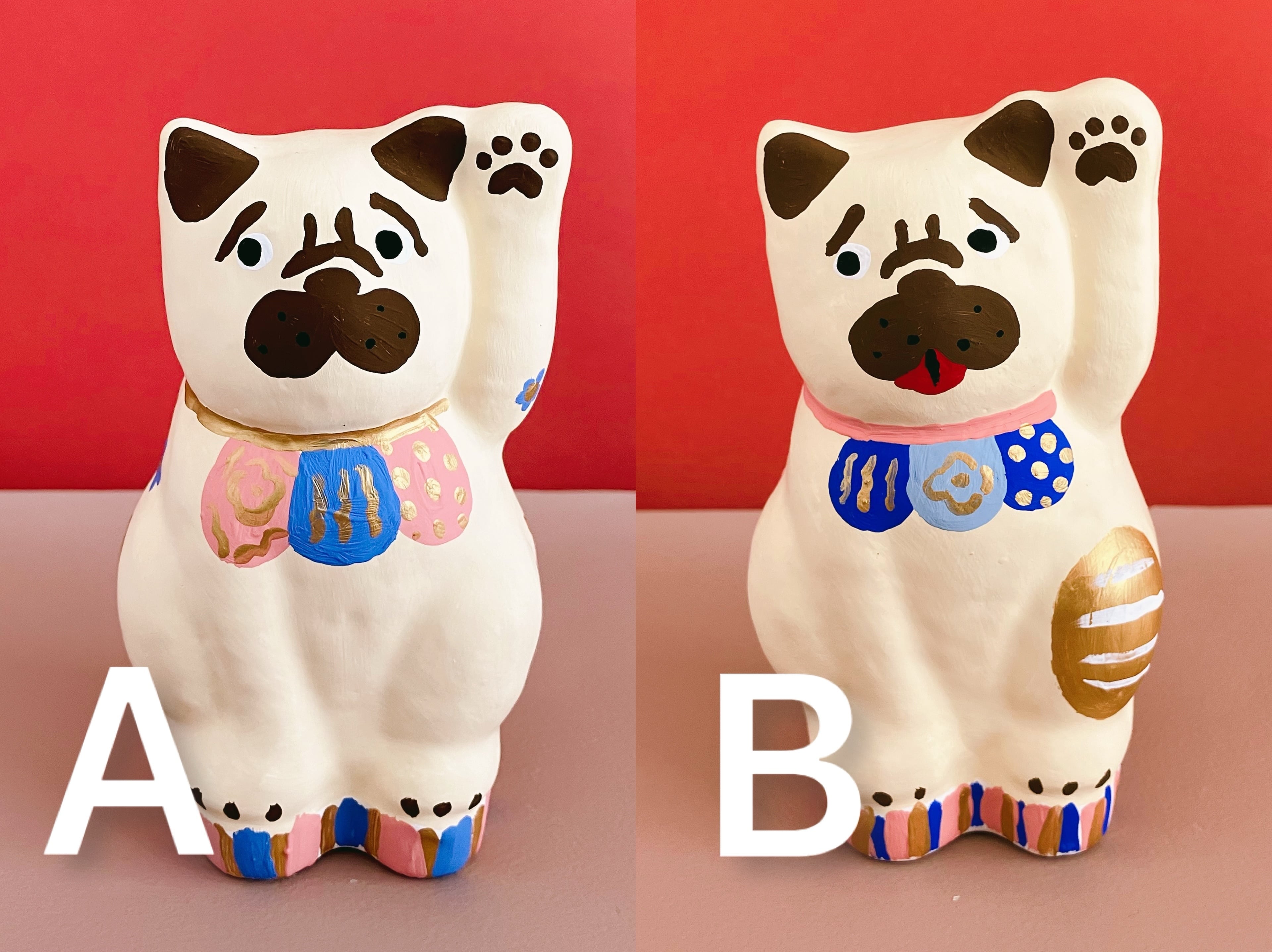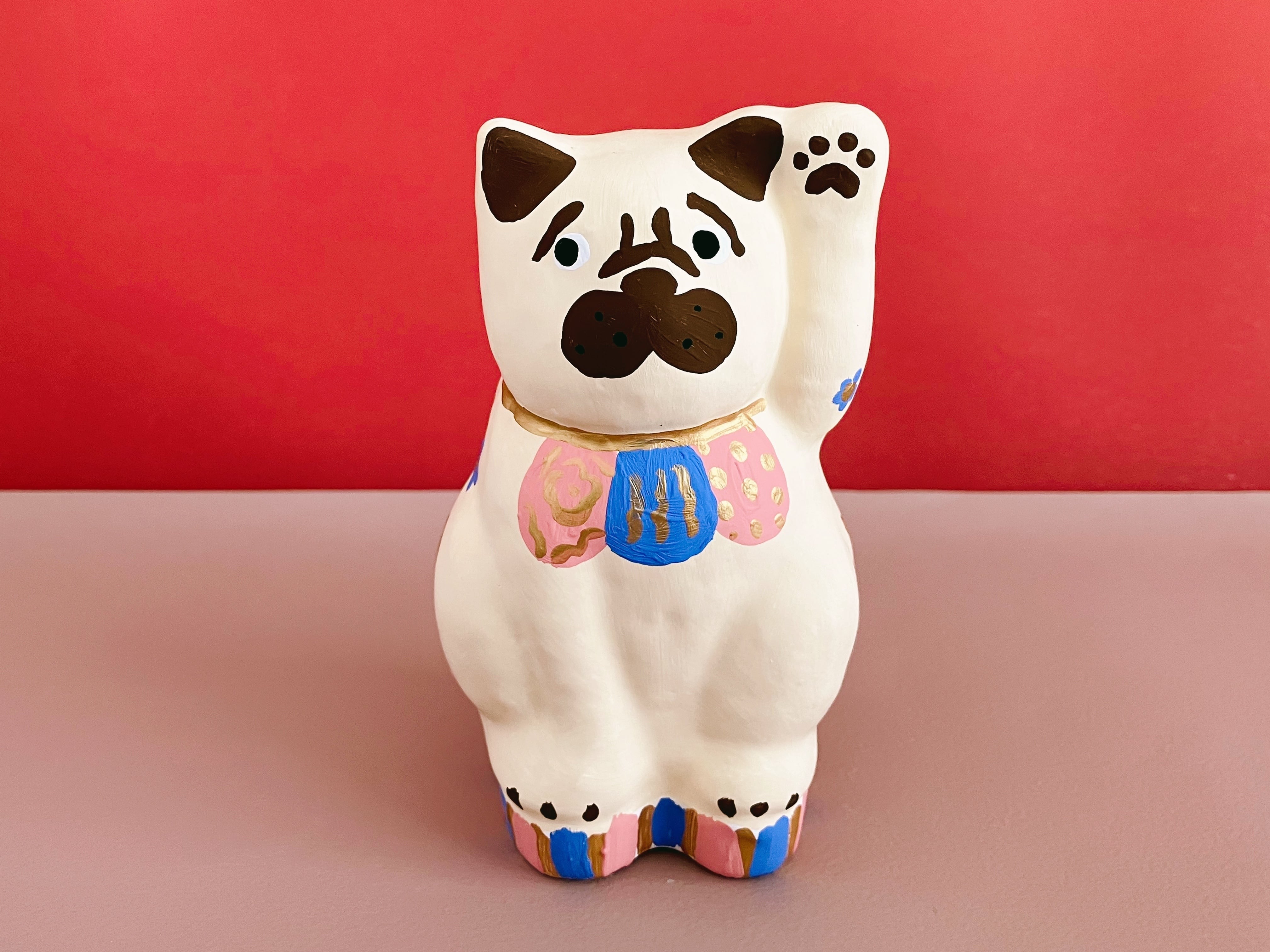 招きパグ「 ピンク×ロイヤルブルー 福」AorB【すぐ発送or予約生産】