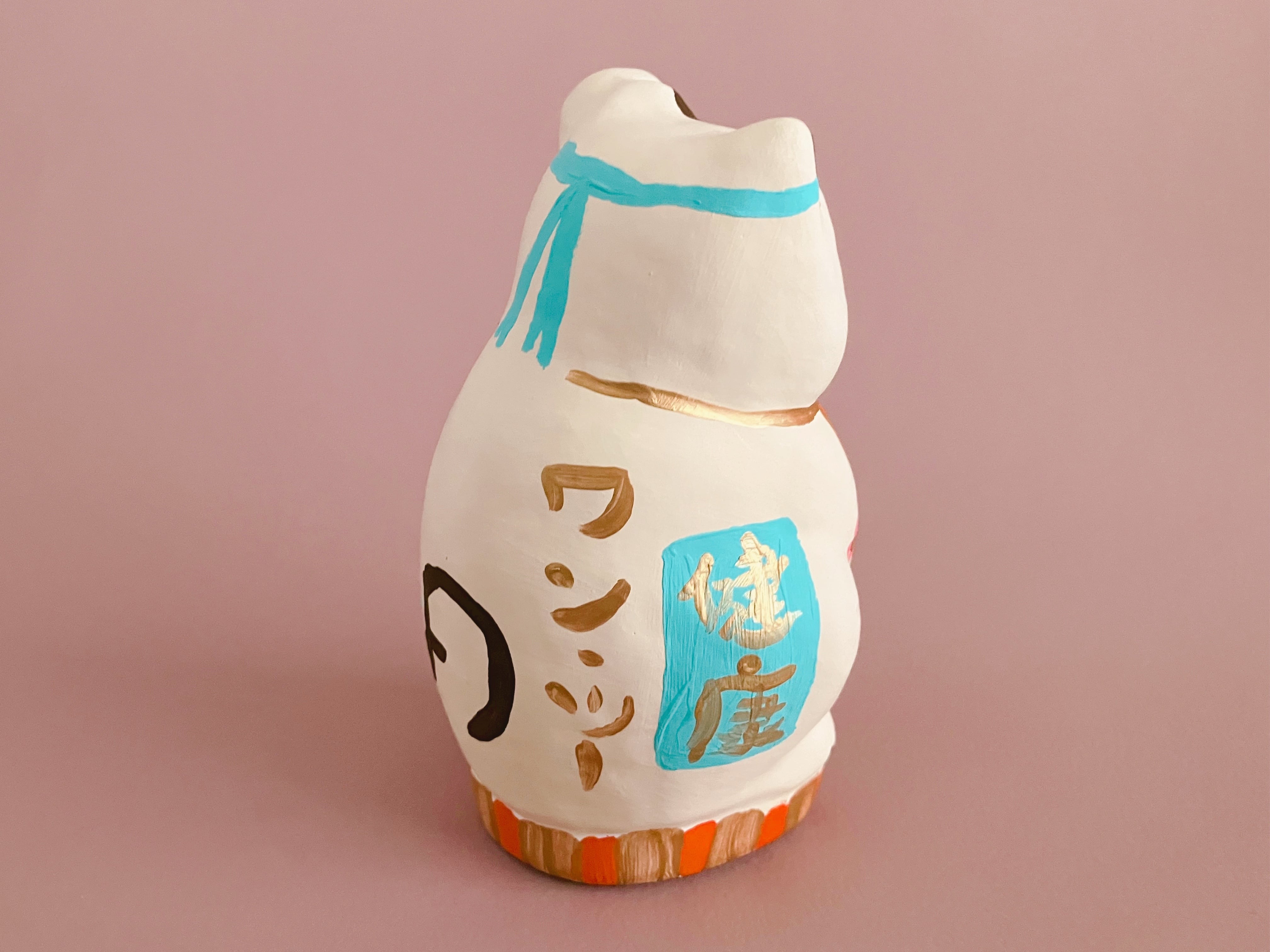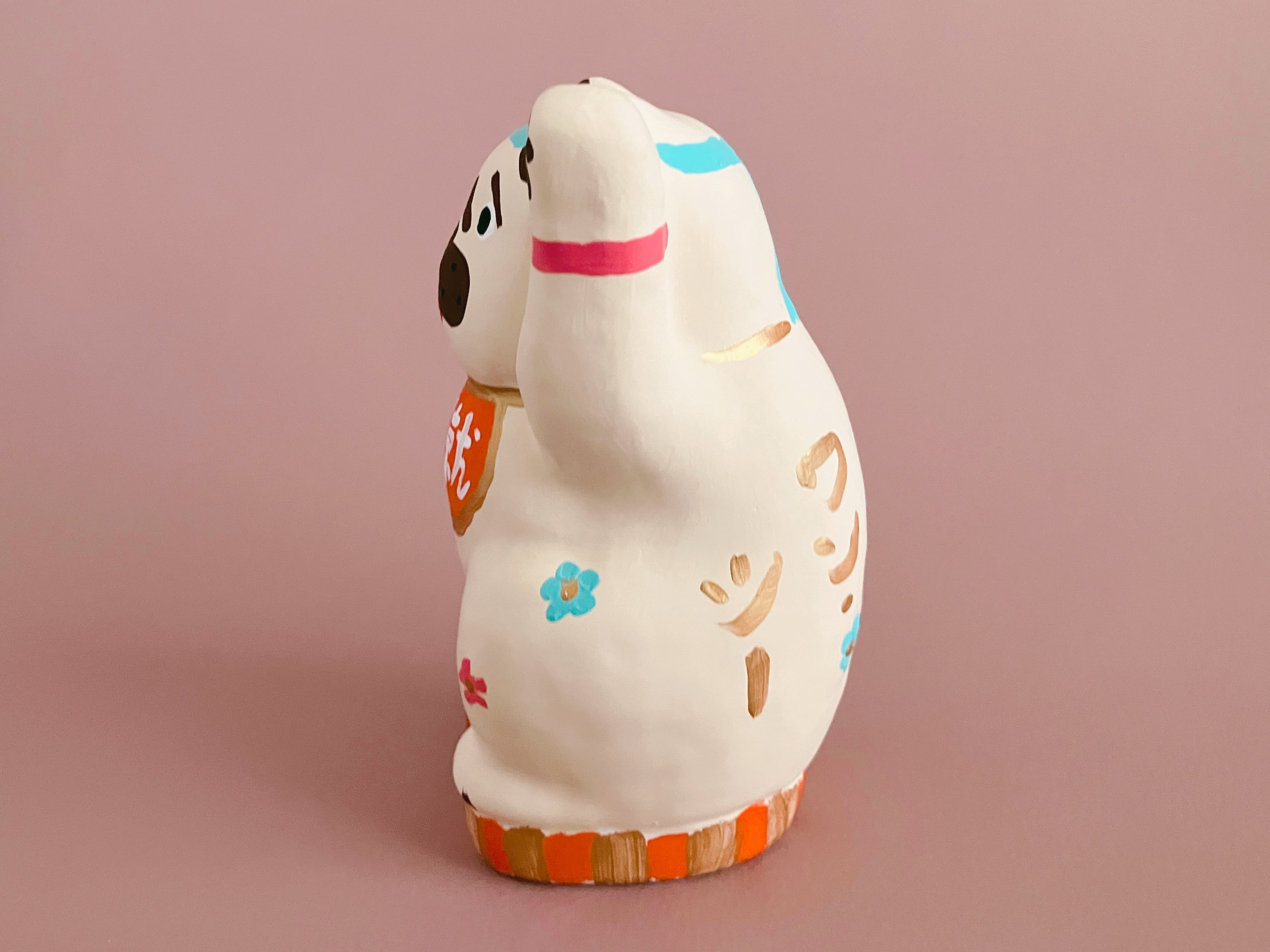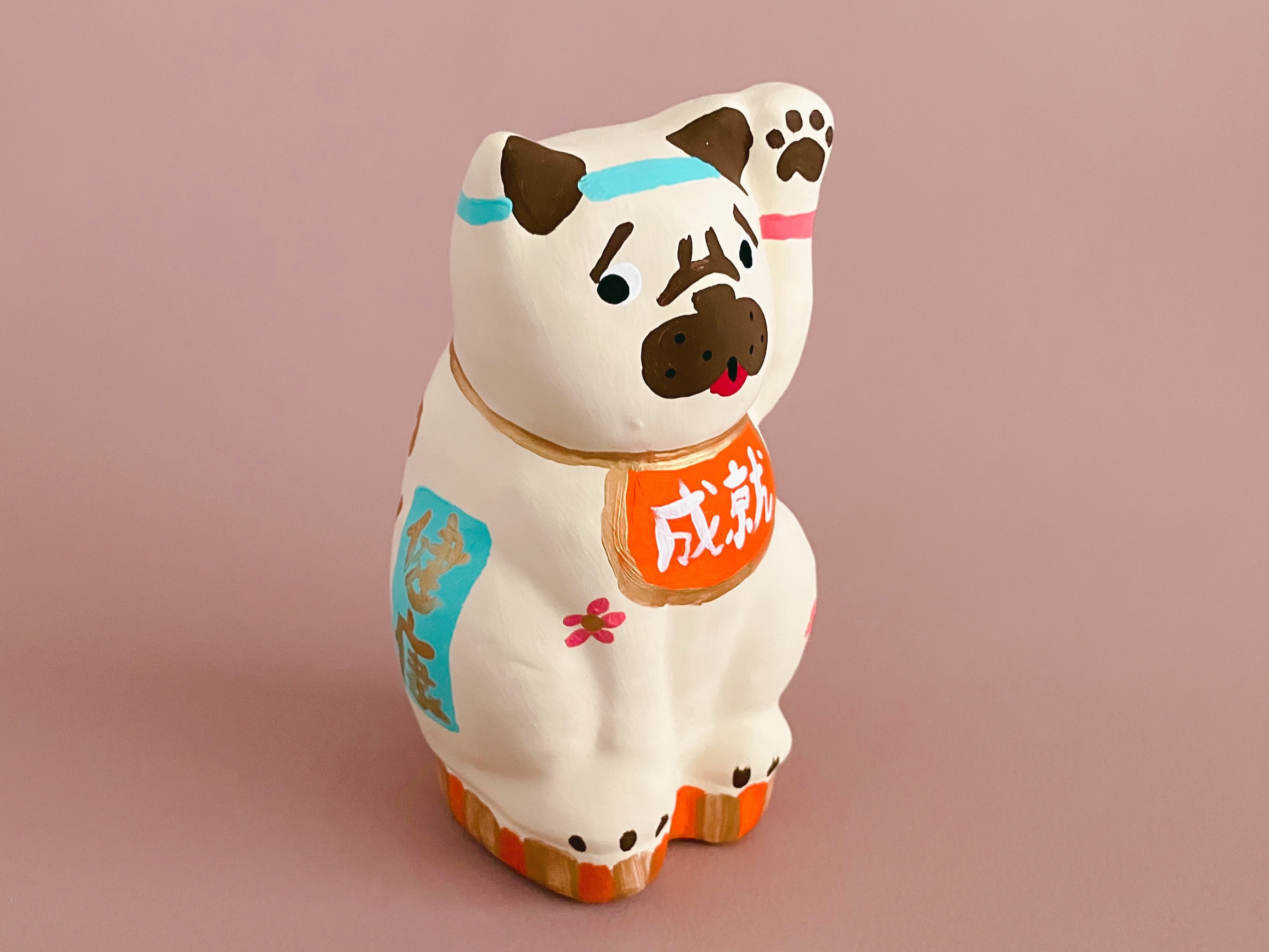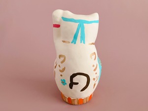 ・はりこの置物は紙製で軽い為土合部分を粘土で張り合わせているものがございます。土でできている為、割れやすくなっておりますので取り扱いに注意してください。