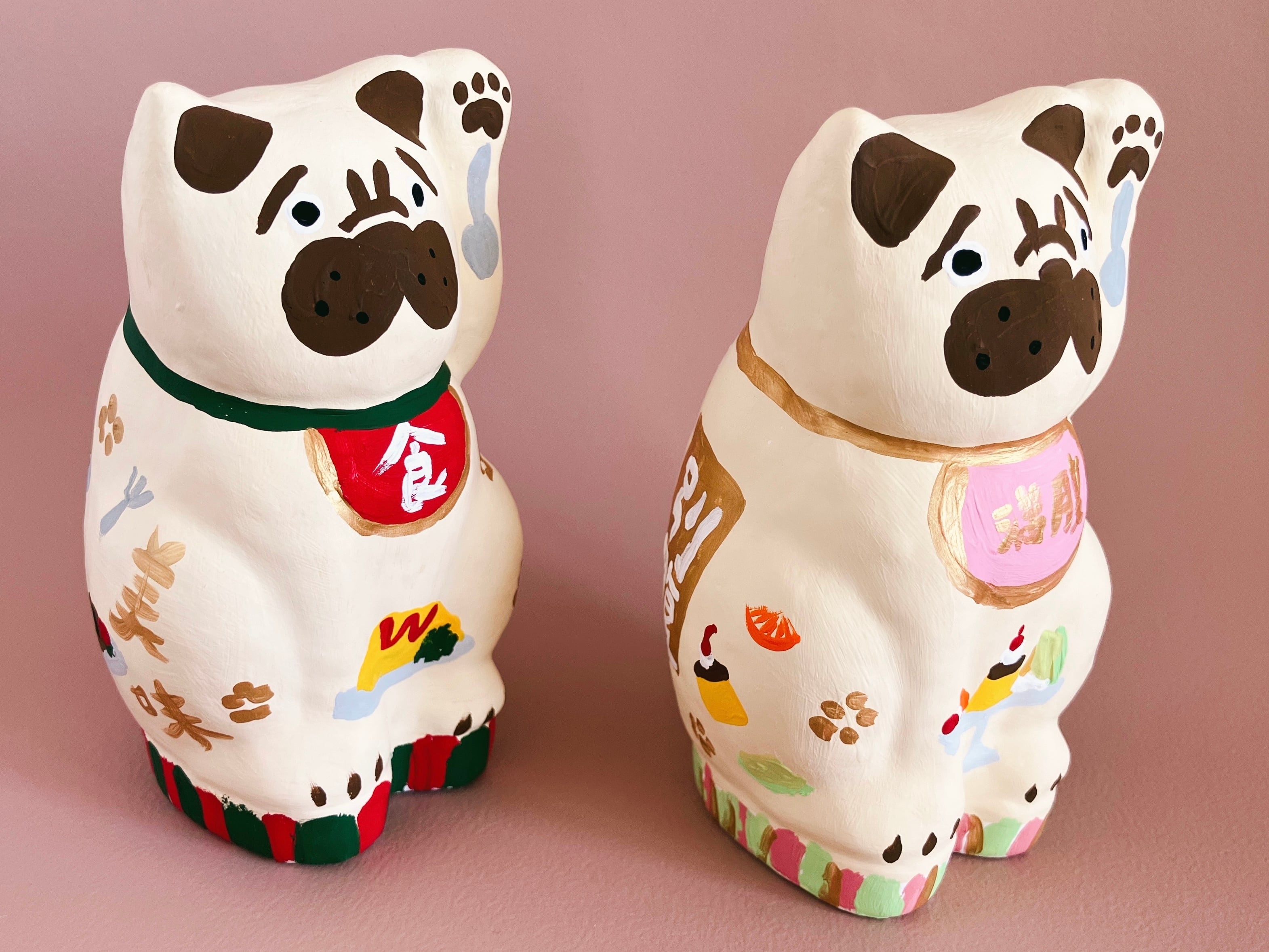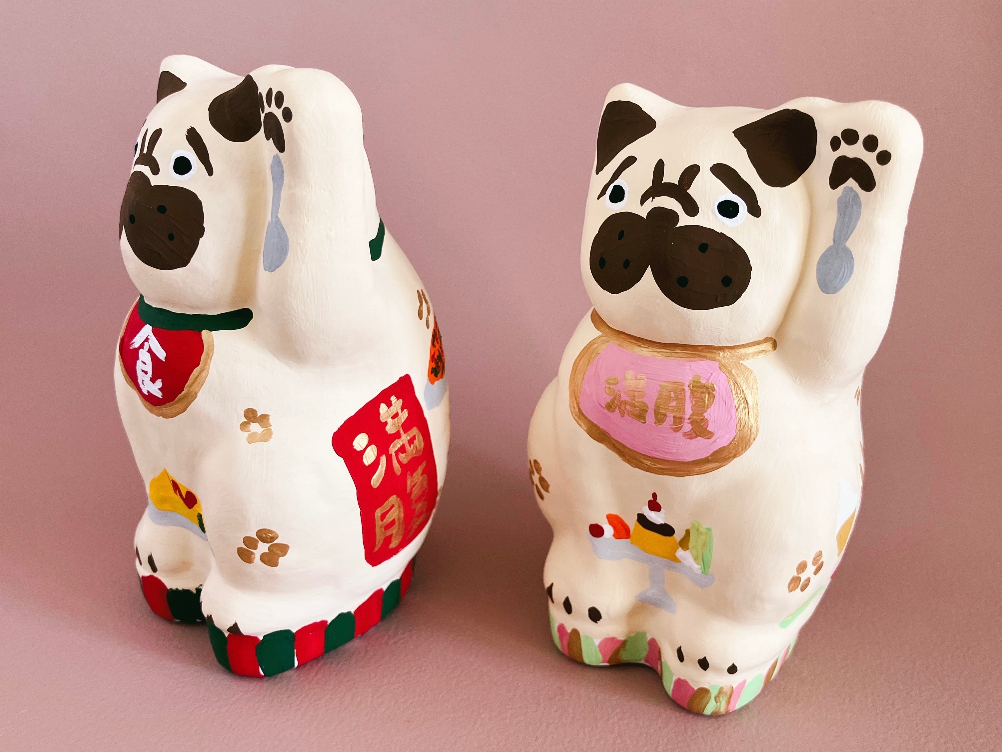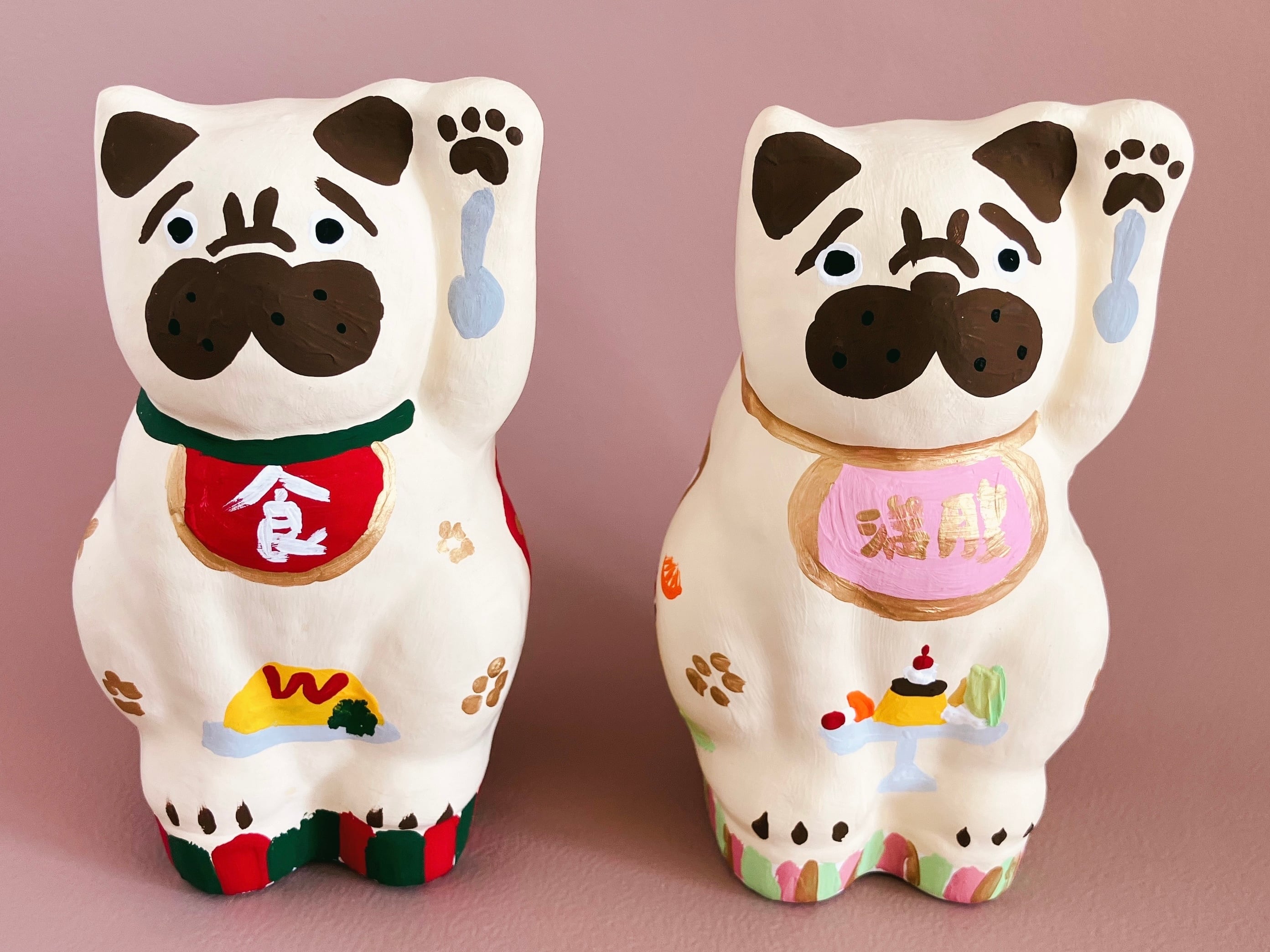 招きパグ「銀の匙・満腹 (洋食)/別腹(スイーツ【すぐ発送or予約生産】