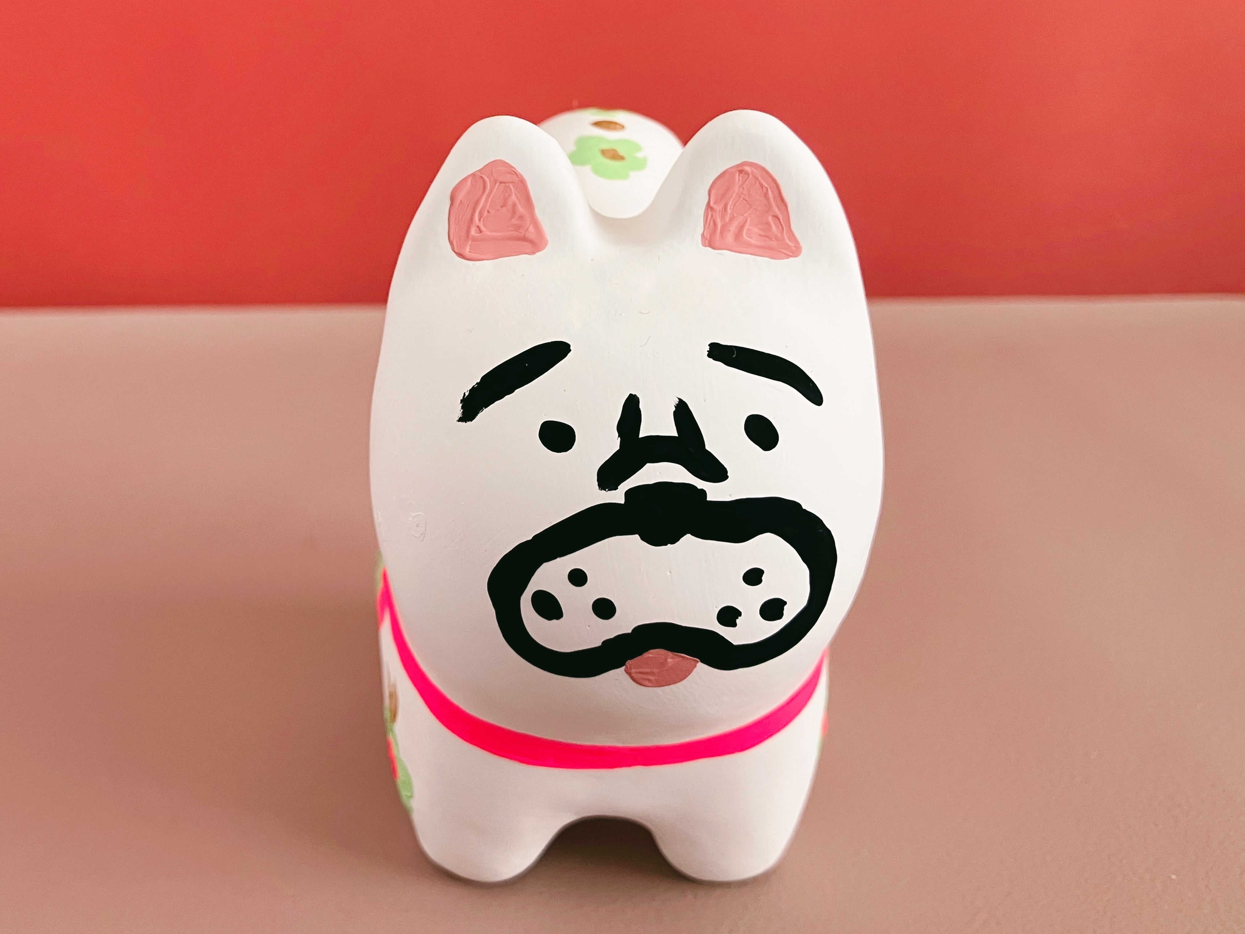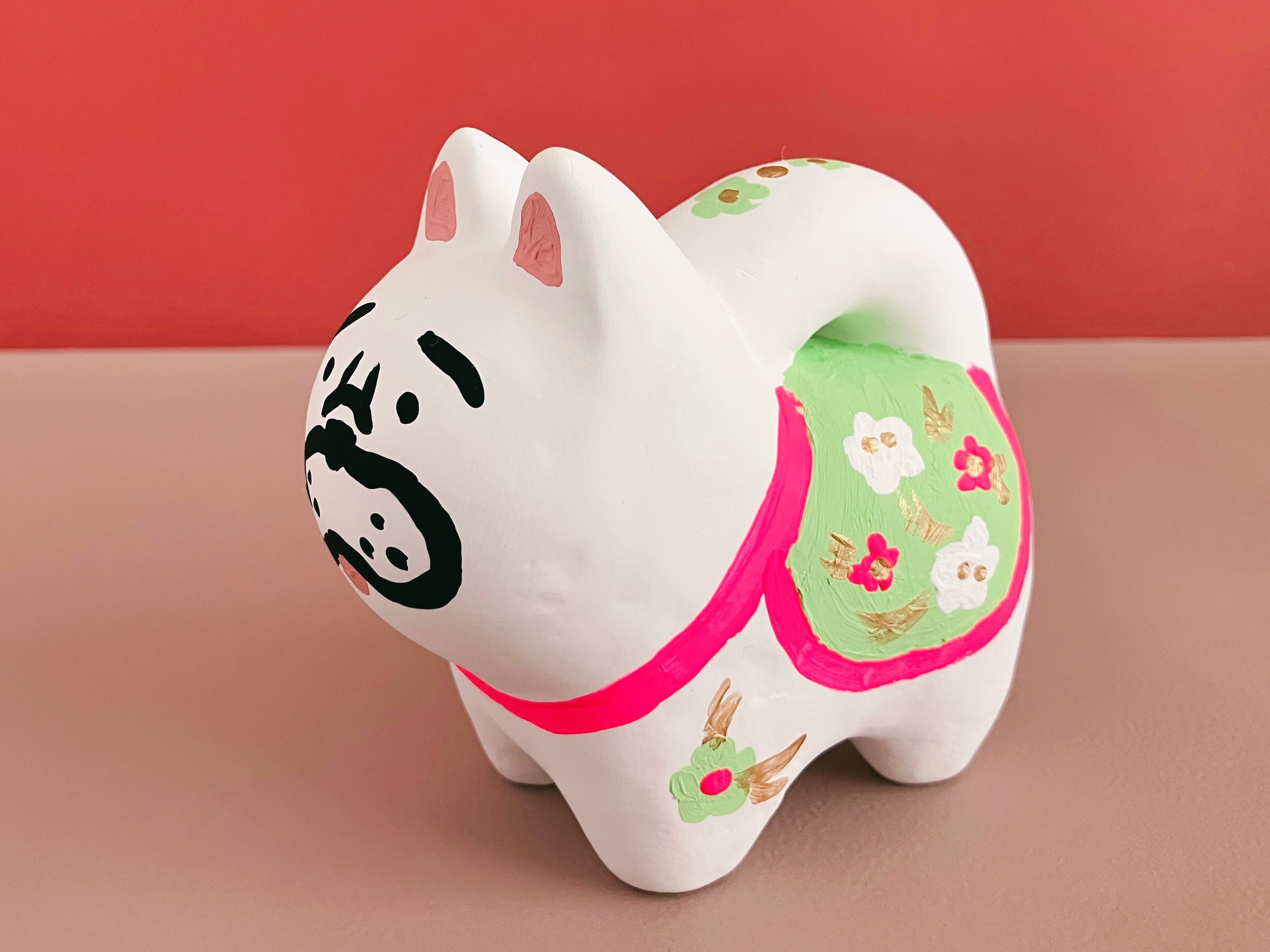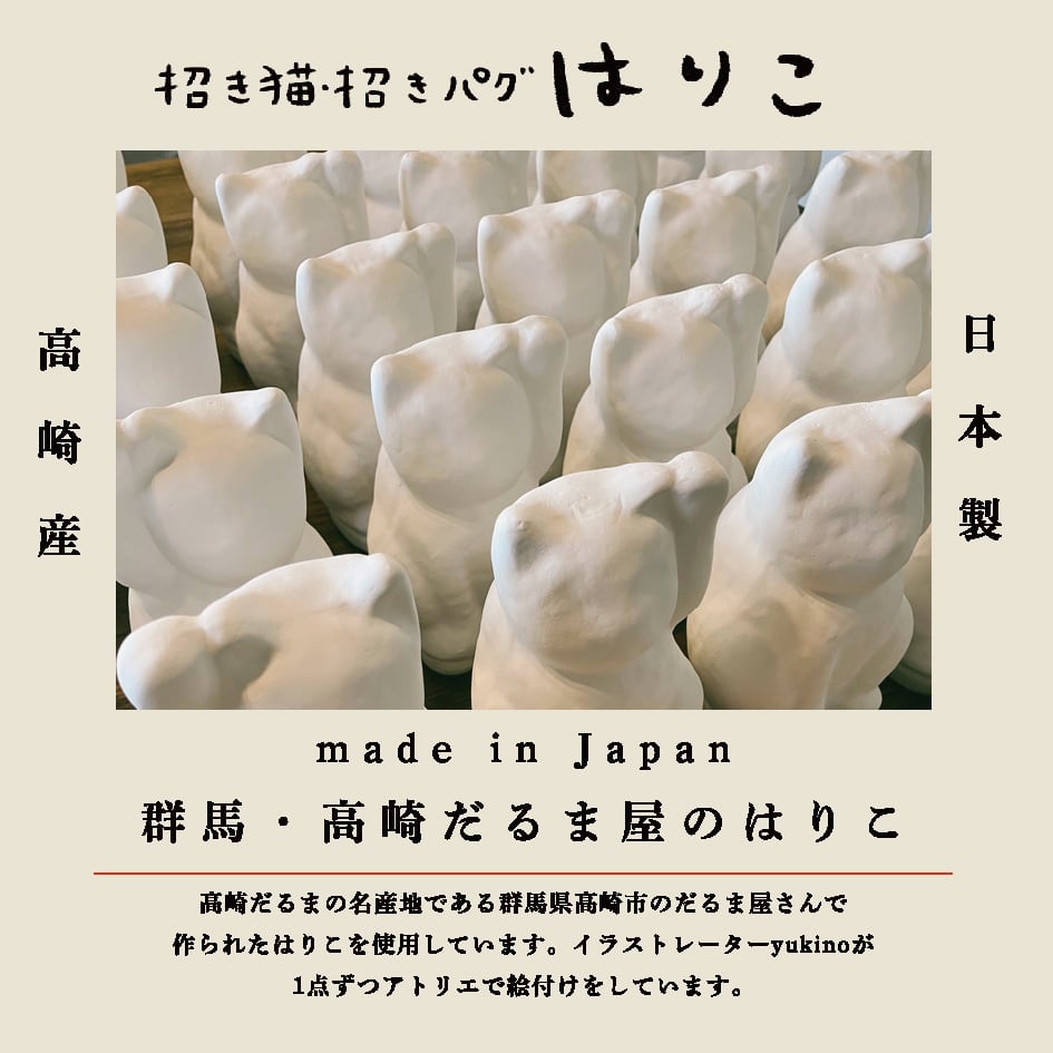 ・はりこの置物は紙製で軽い為土合部分を粘土で張り合わせているものがございます。土でできている為、割れやすくなっておりますので取り扱いに注意してください。