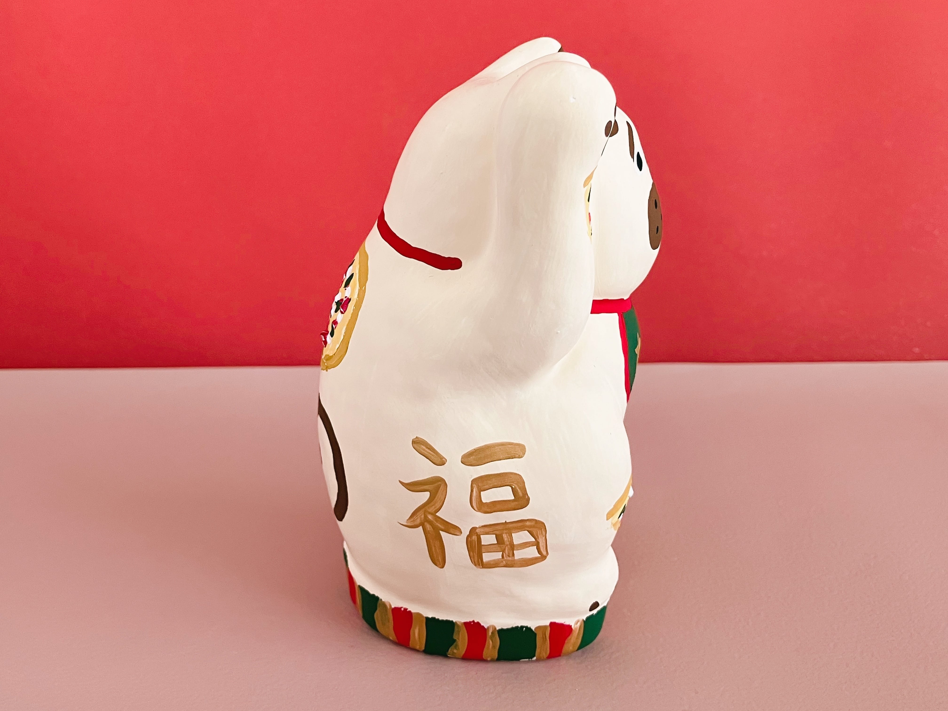 ・はりこの置物は紙製で軽い為土合部分を粘土で張り合わせているものがございます。土でできている為、割れやすくなっておりますので取り扱いに注意してください。