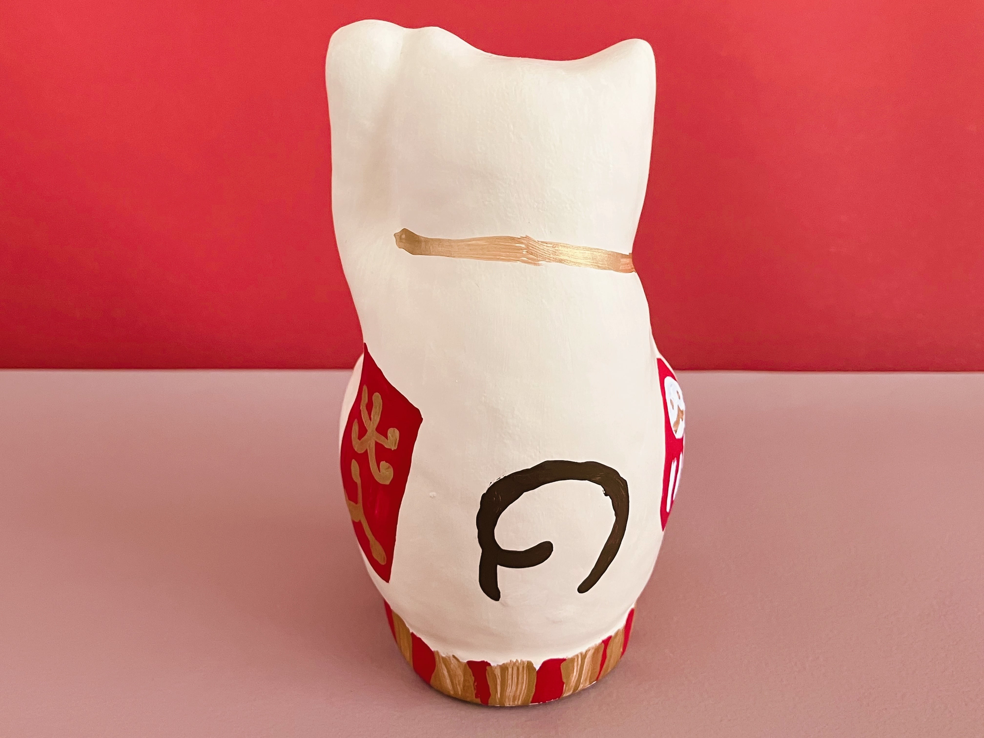 ・はりこの置物は紙製で軽い為土合部分を粘土で張り合わせているものがございます。土でできている為、割れやすくなっておりますので取り扱いに注意してください。