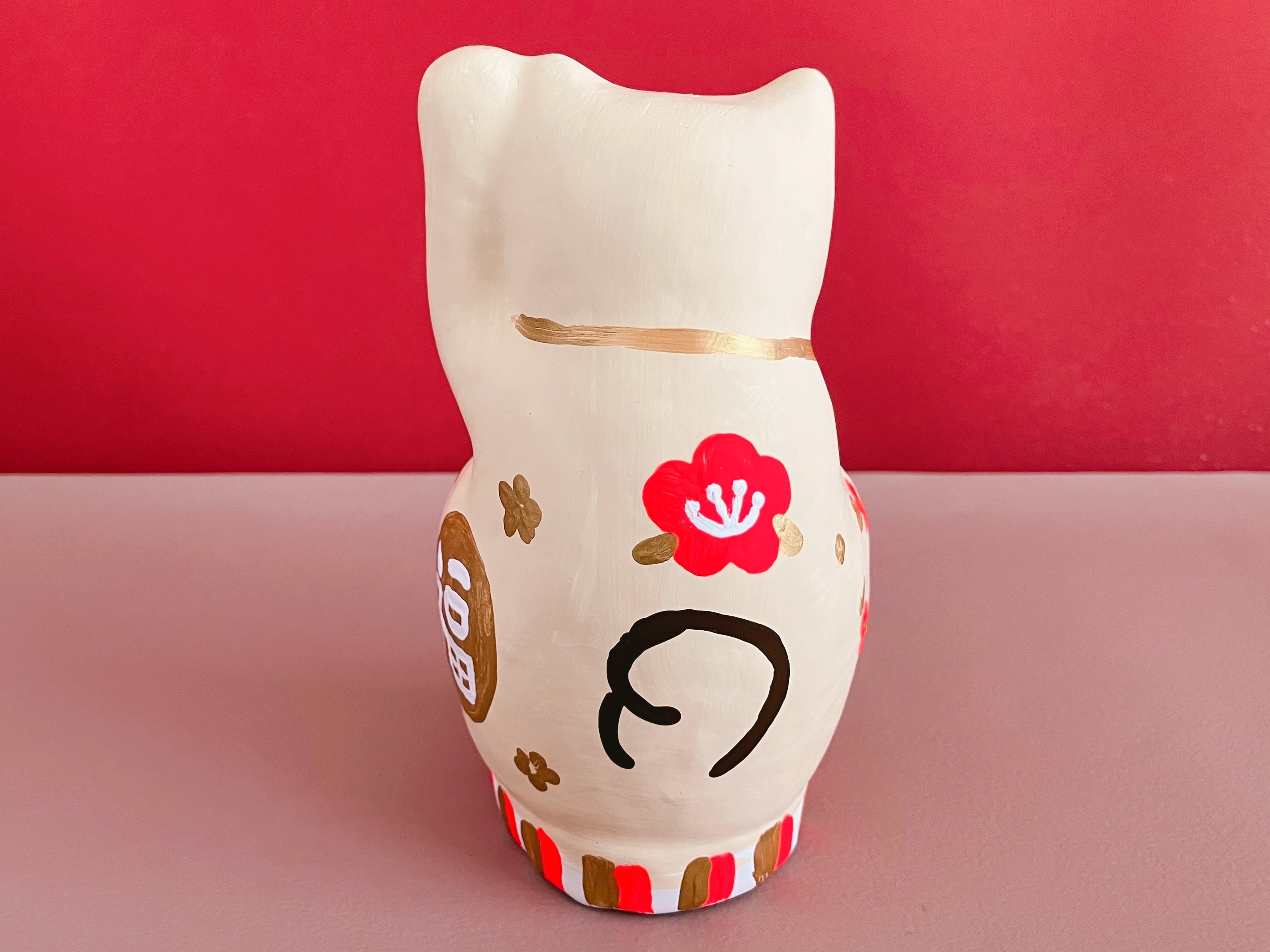 ・はりこの置物は紙製で軽い為土合部分を粘土で張り合わせているものがございます。土でできている為、割れやすくなっておりますので取り扱いに注意してください。