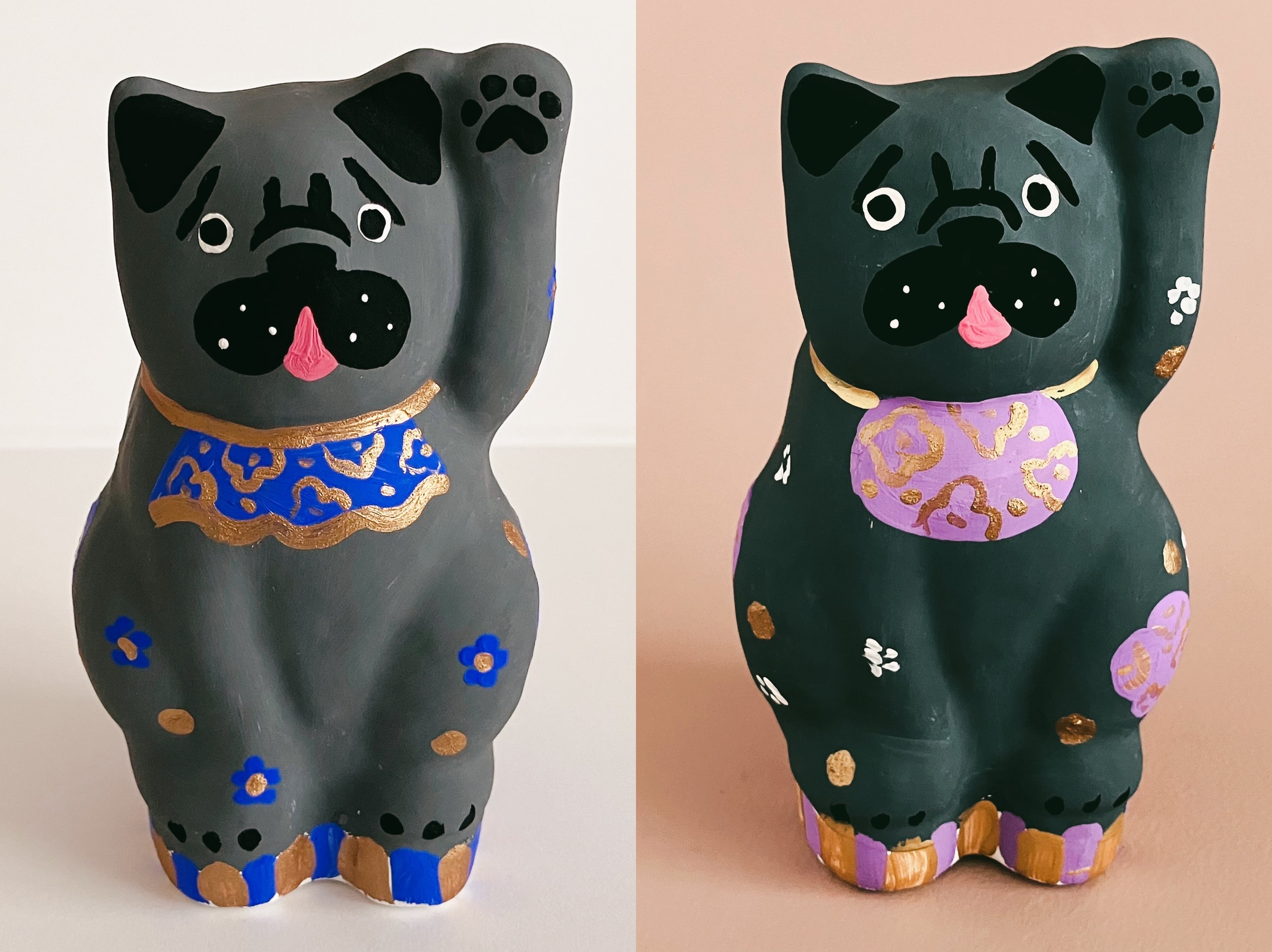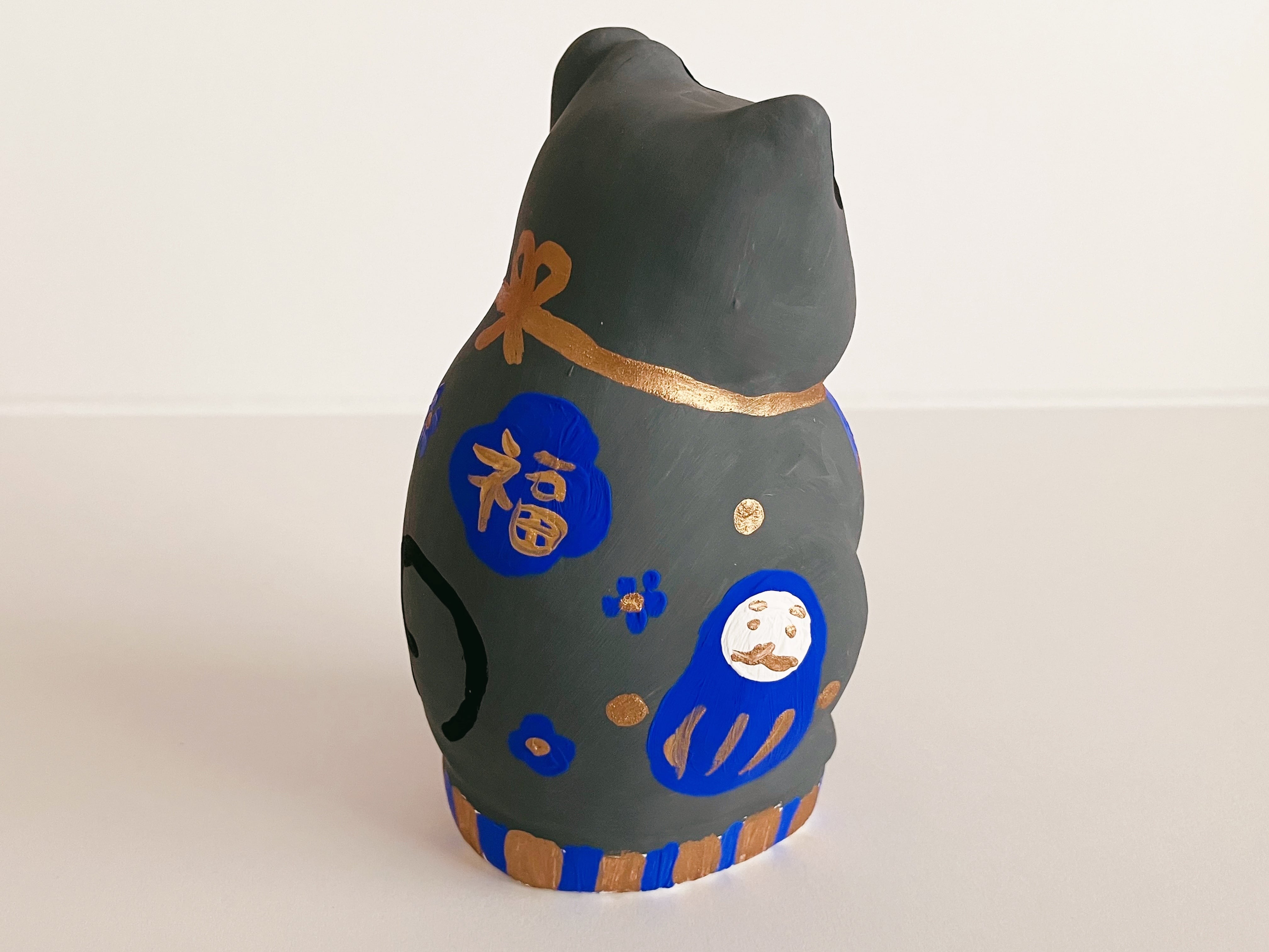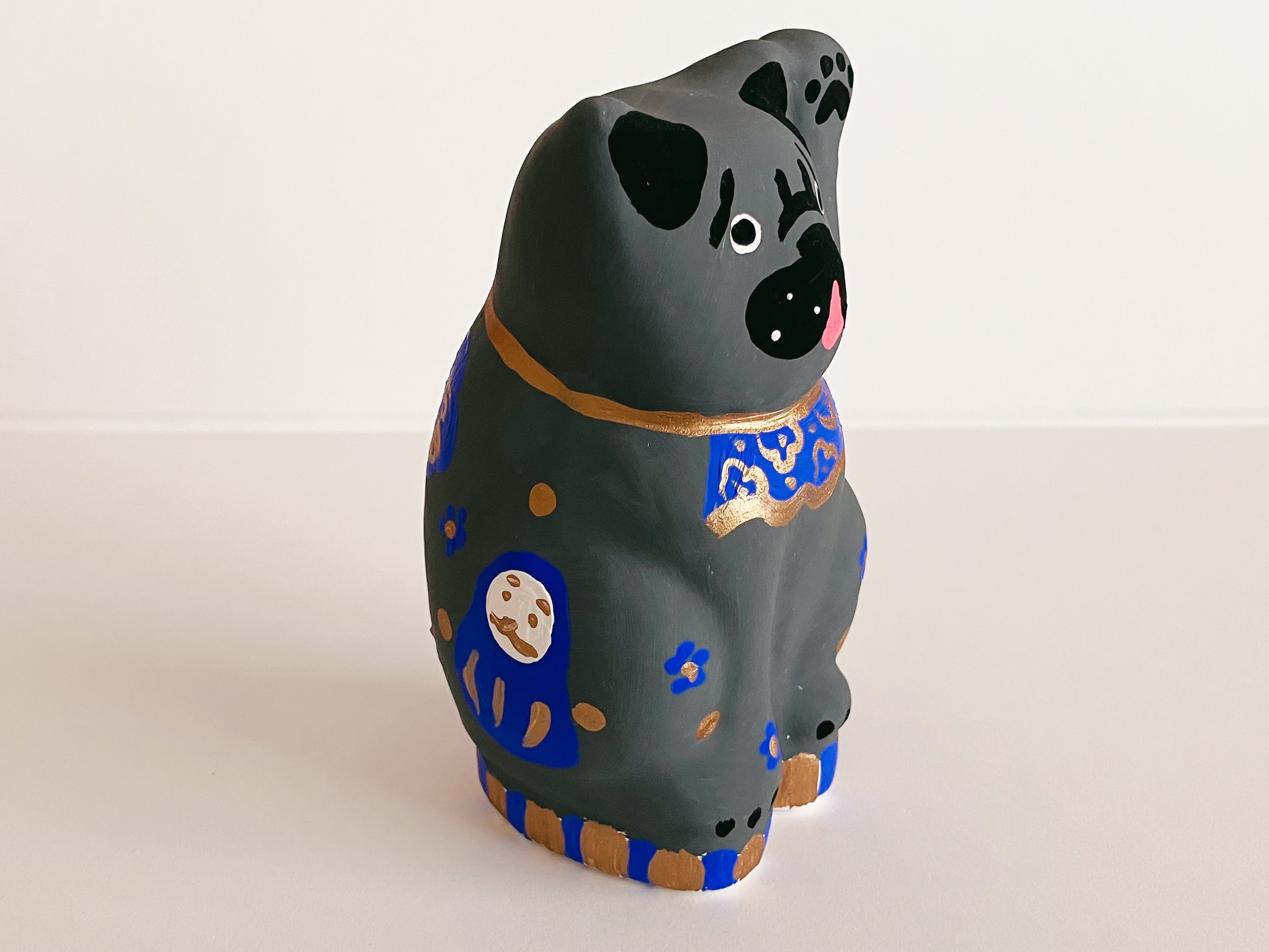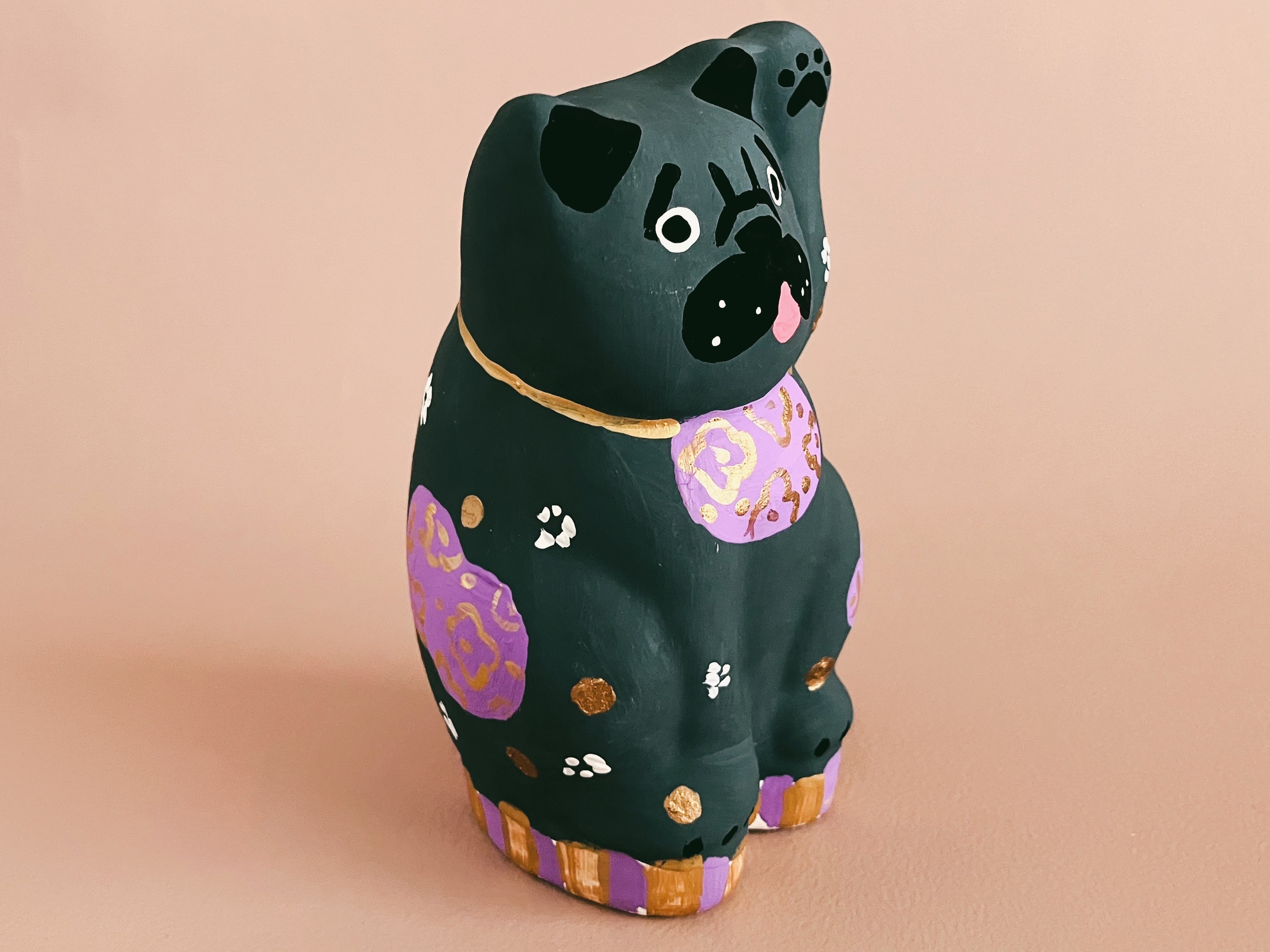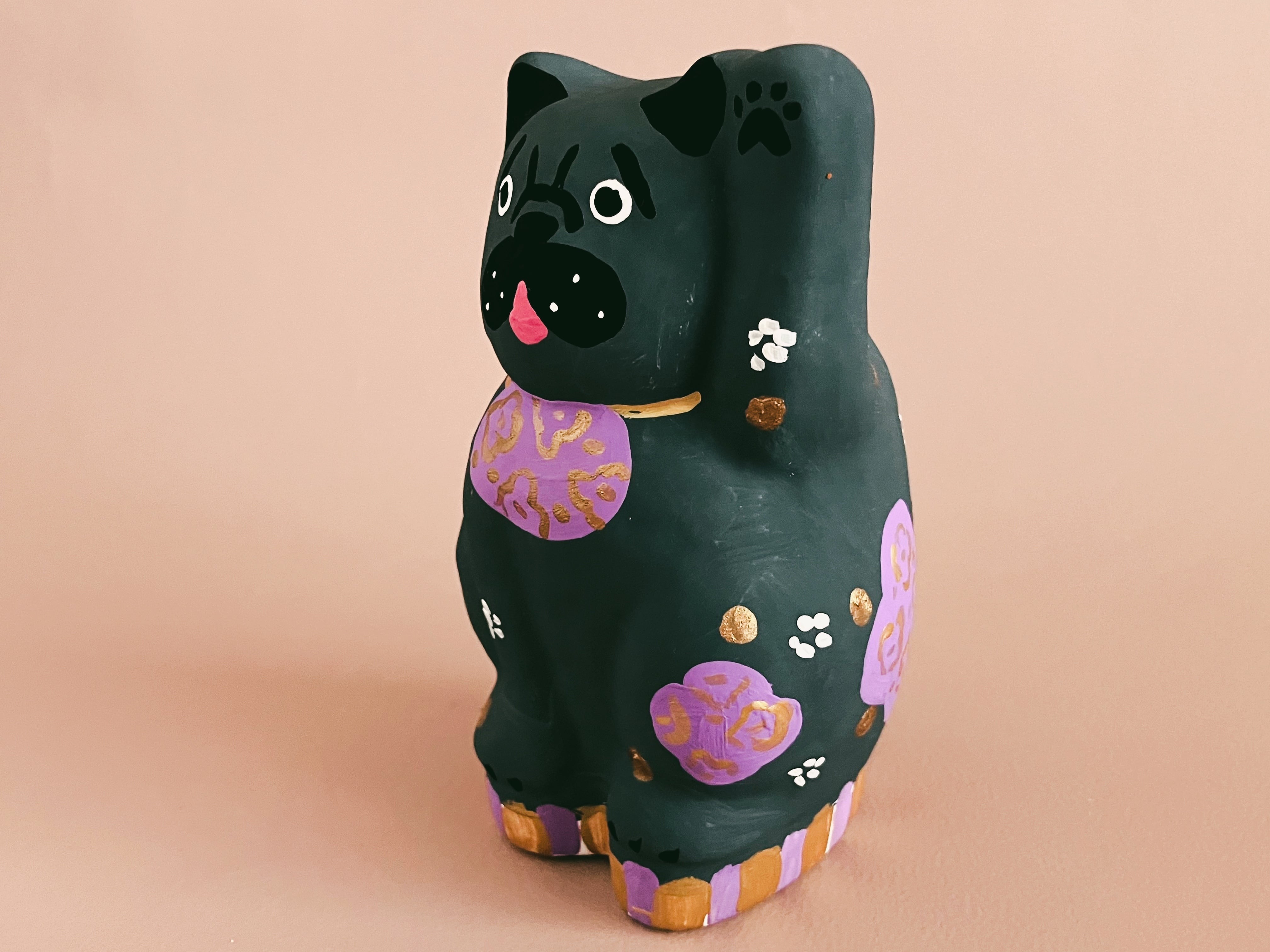 招きパグ「黒パグ金花柄」【すぐ発送or予約生産】