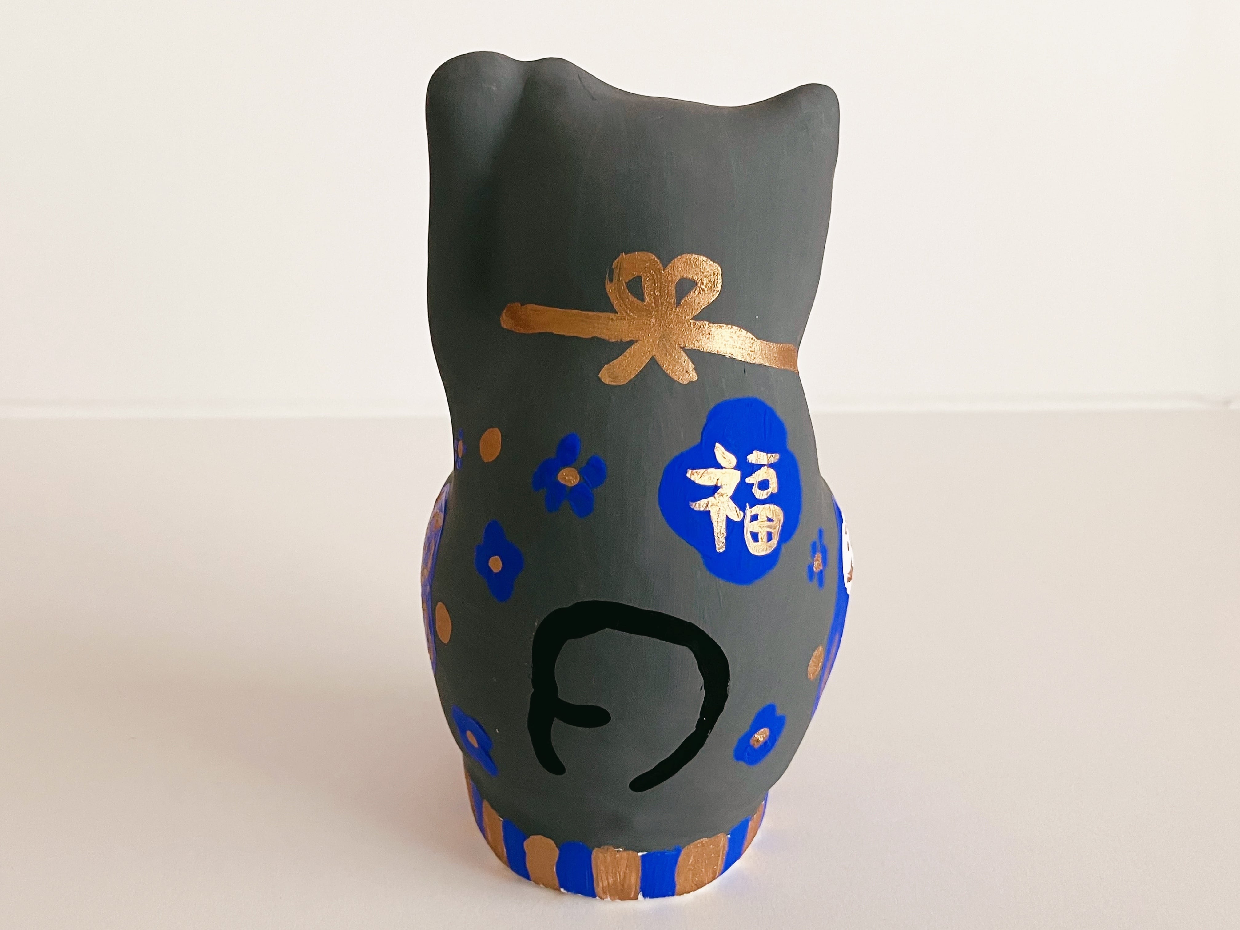 ・はりこの置物は紙製で軽い為土合部分を粘土で張り合わせているものがございます。土でできている為、割れやすくなっておりますので取り扱いに注意してください。