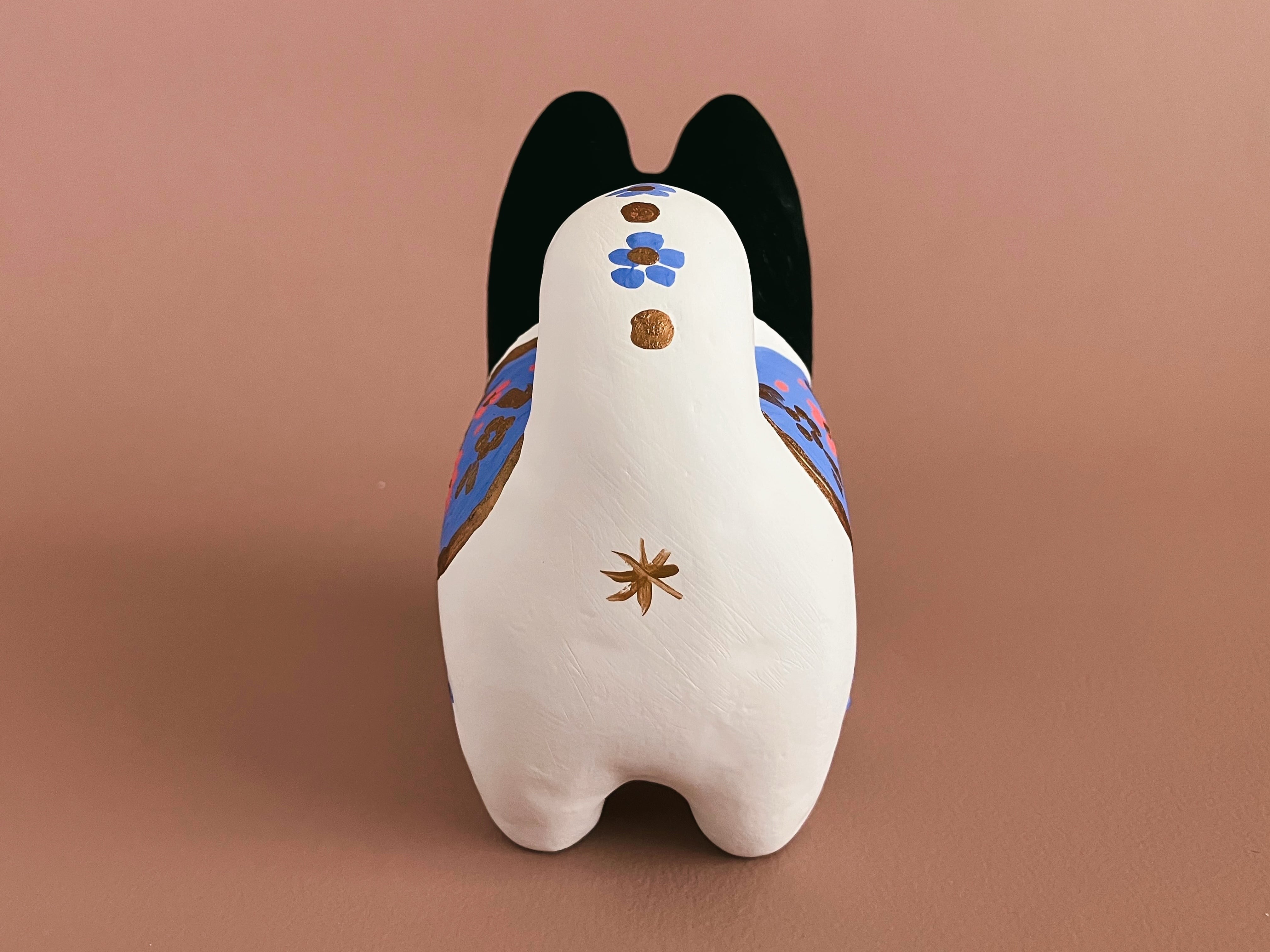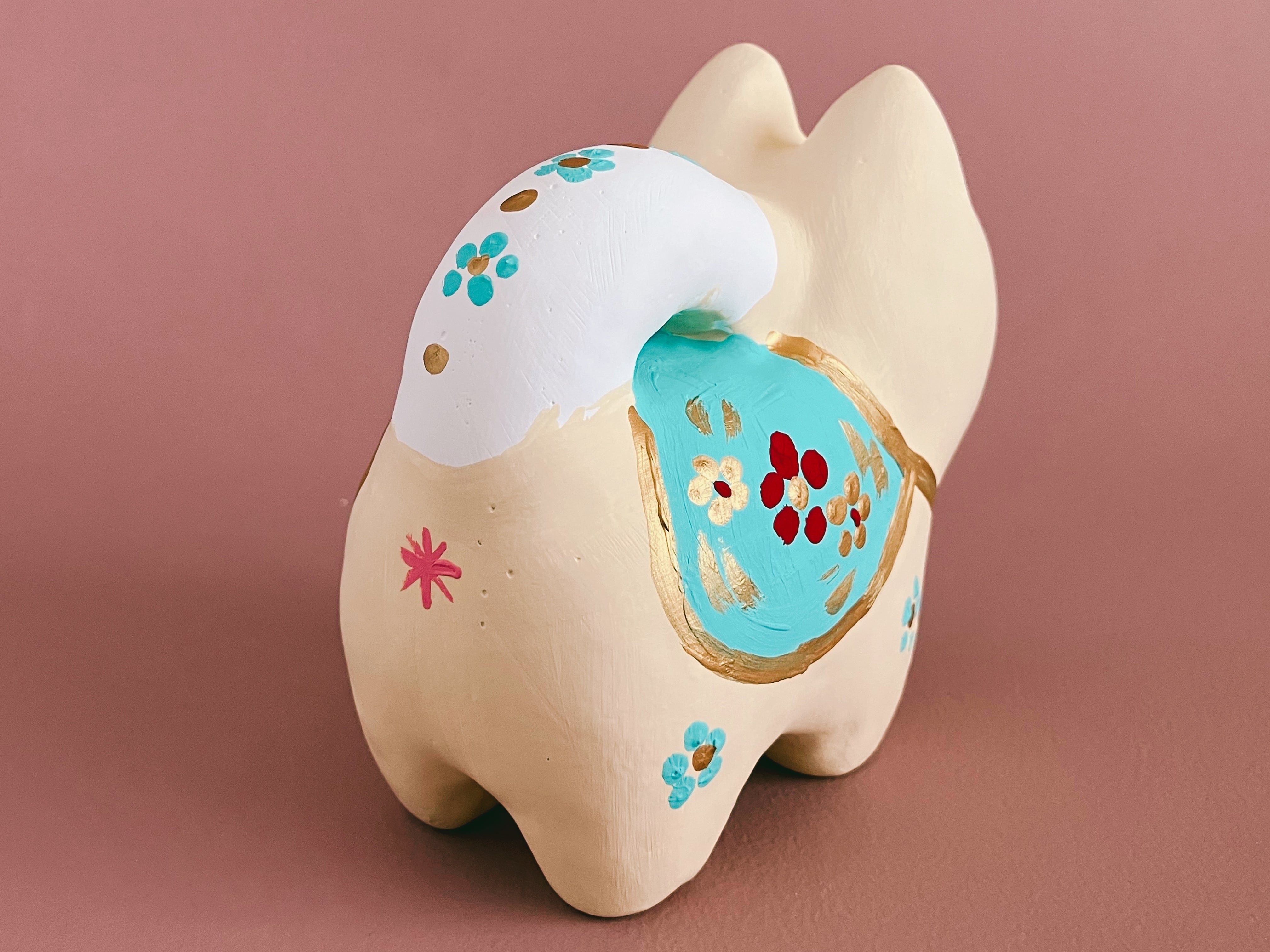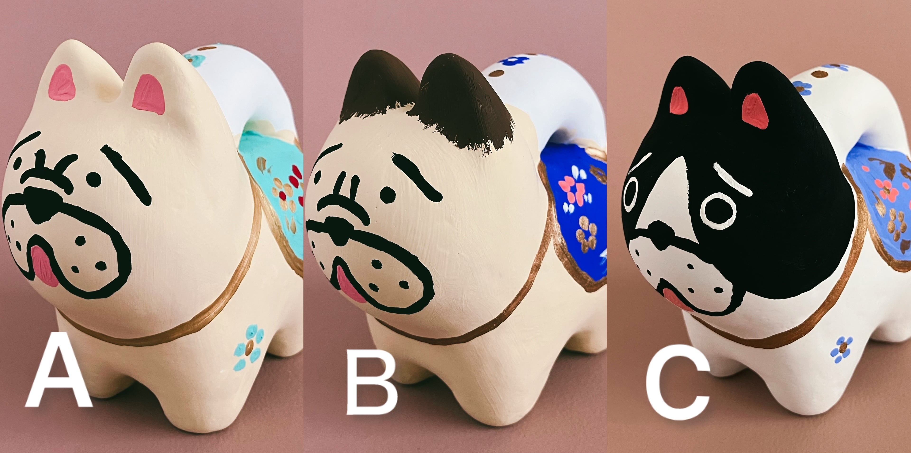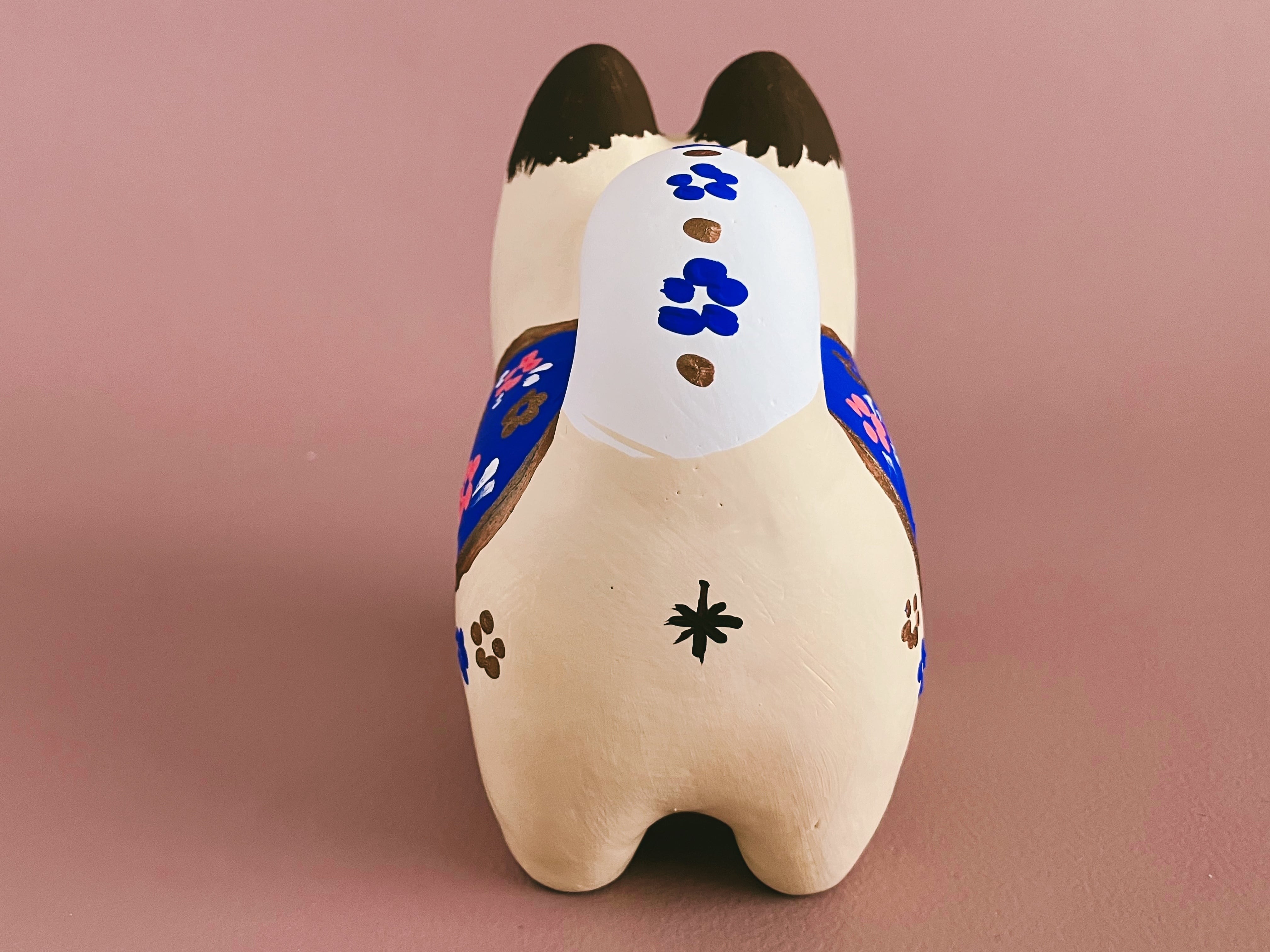 ・はりこの置物は紙製で軽い為土合部分を粘土で張り合わせているものがございます。土でできている為、割れやすくなっておりますので取り扱いに注意してください。