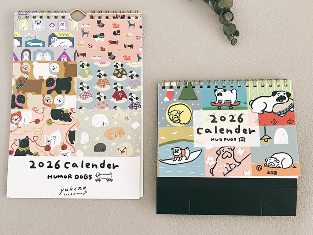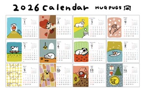 パグだらけのA6置きタイプ「HUG PUG」カレンダーと