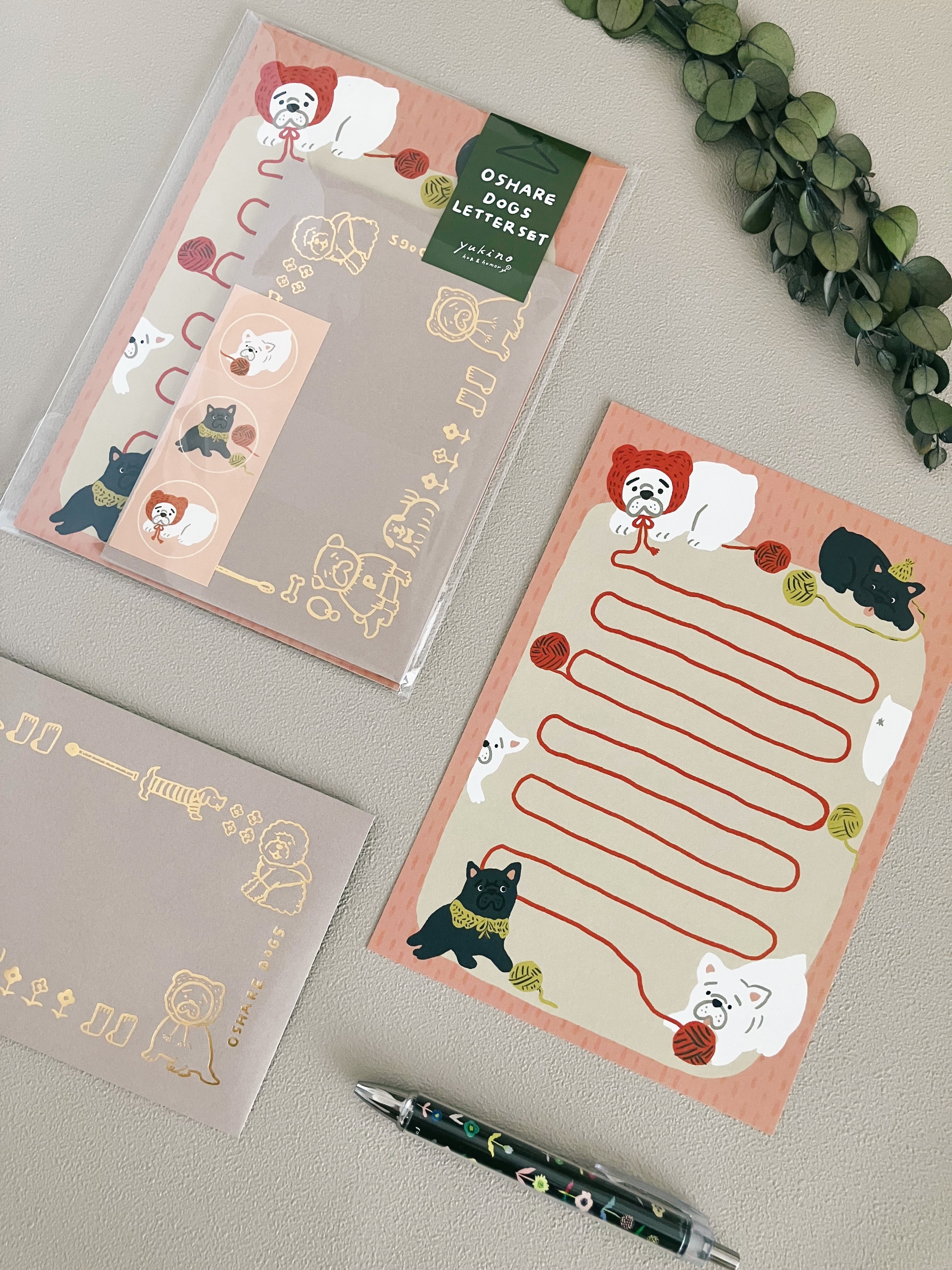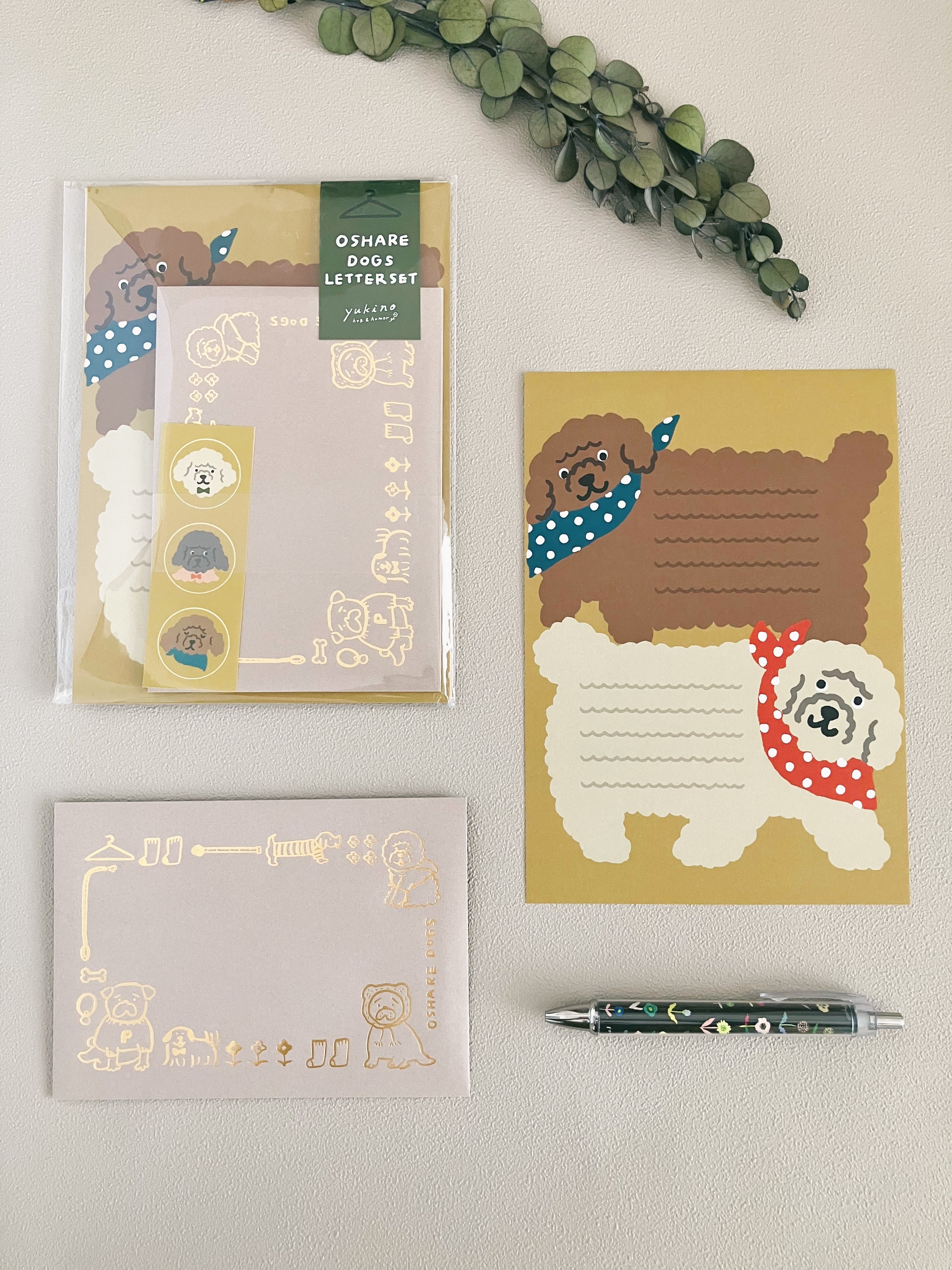 思い思いにおめかししたオシャレな犬たちのレターセットができました。