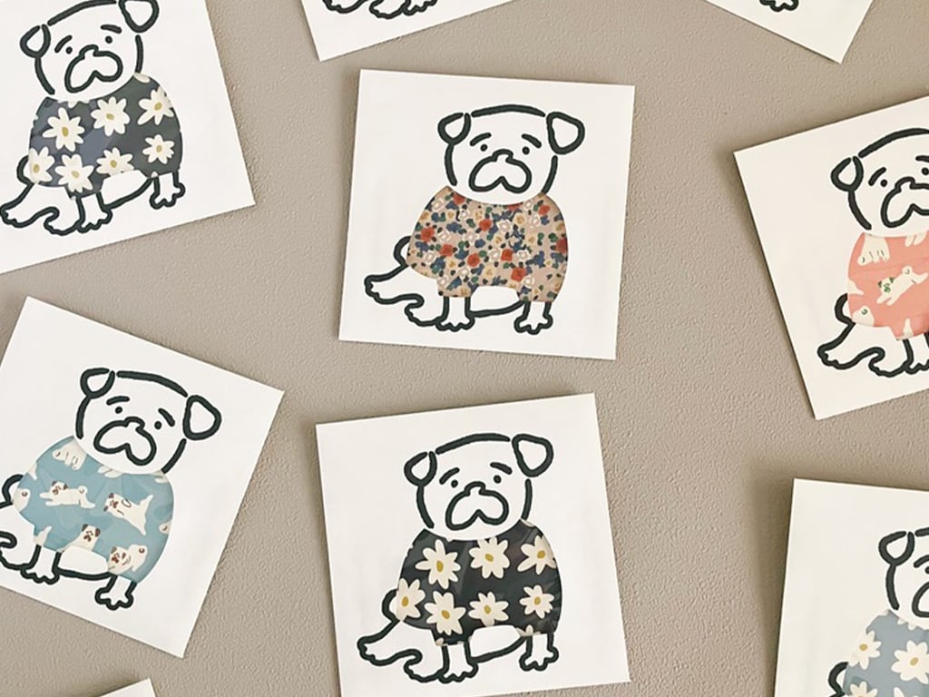 パグのオシャレが完成するそんなユーモアあるカード&封筒セットができました。