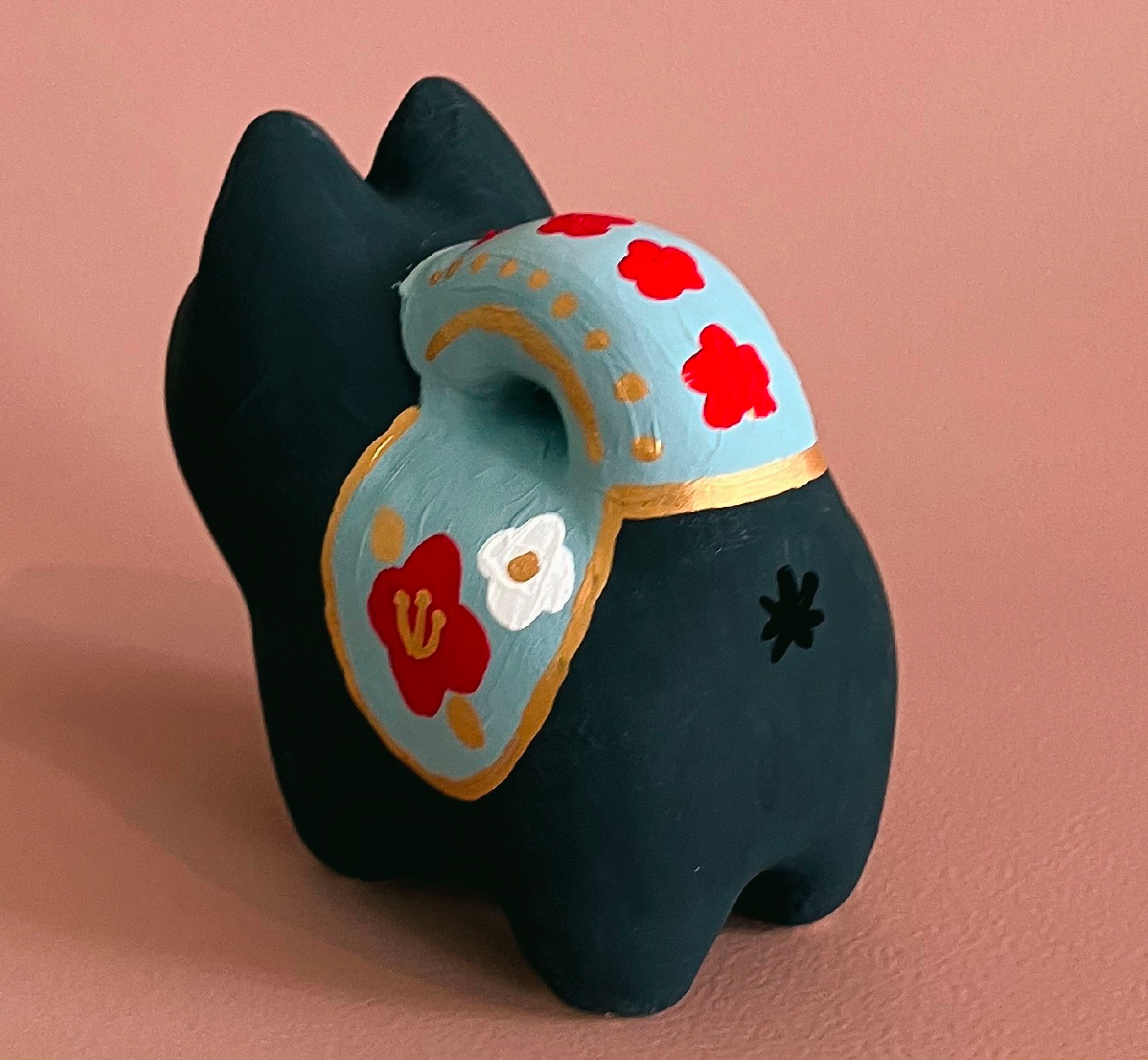 ・はりこの置物は紙製で軽い為土合部分を粘土で張り合わせているものがございます。土でできている為、割れやすくなっておりますので取り扱いに注意してください。